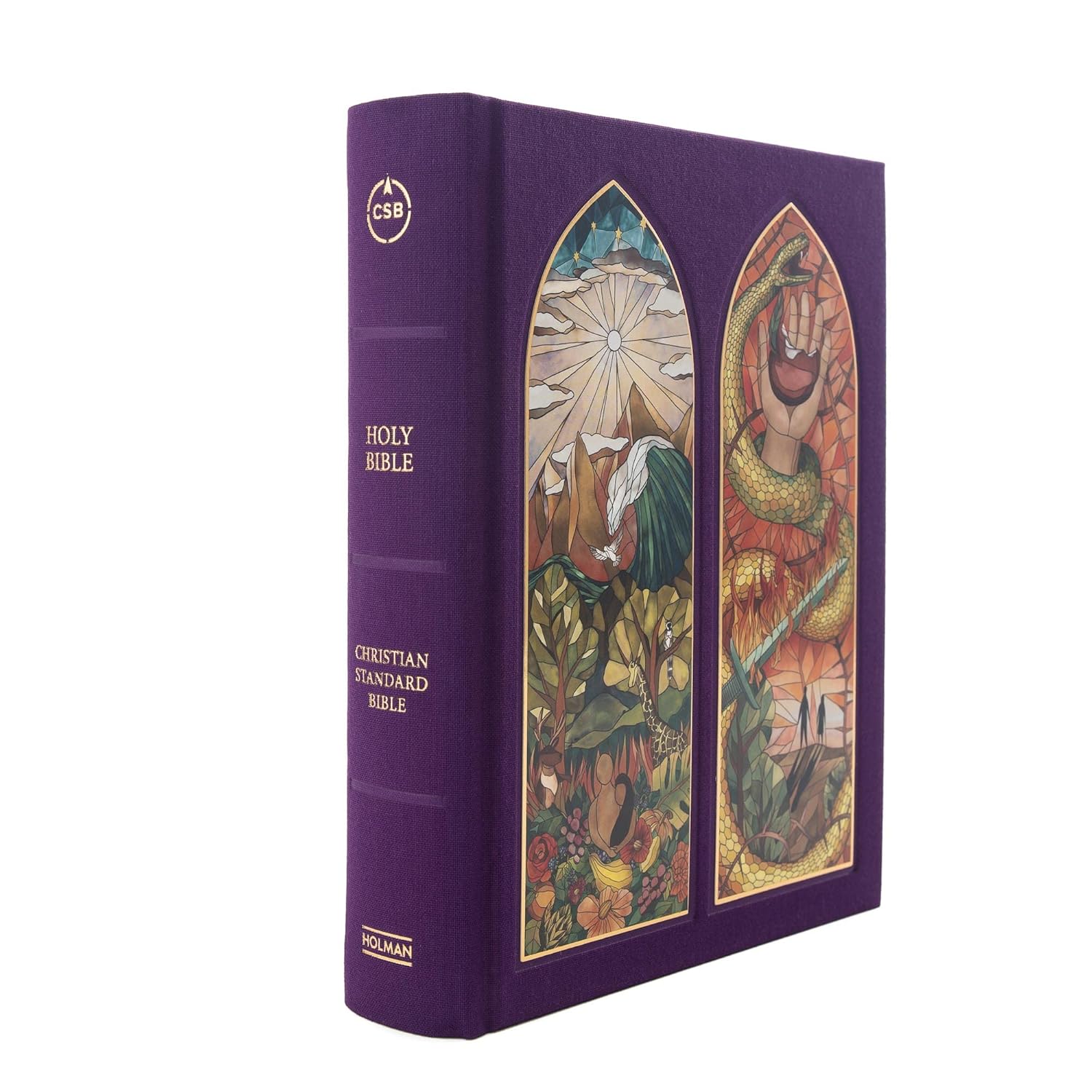 The CSB Notetaking Bible, Stained Glass Edition features a unique cover design with hand-drawn stained glass style art depicting the grand story of Scripture with printed inlays of the biblical accounts of creation, fall, redemption, and restoration debossed on high-quality cloth cover materials. Includes the most popular journaling Bible features—an elegant single-column setting with wide journaling margins on each page, paired with a durable Smyth-sewn lay-flat binding and high-quality crème paper. This beautiful Bible is the perfect place for recording a lifetime of reflections, insights, and prayers.