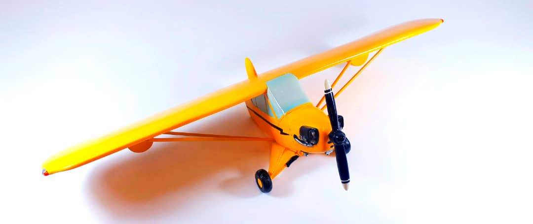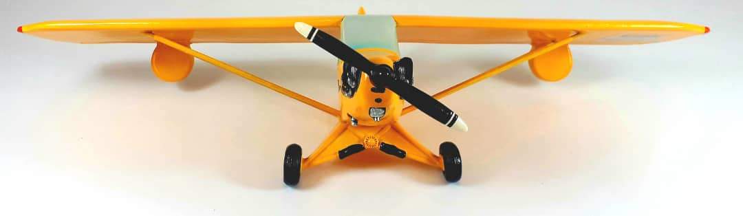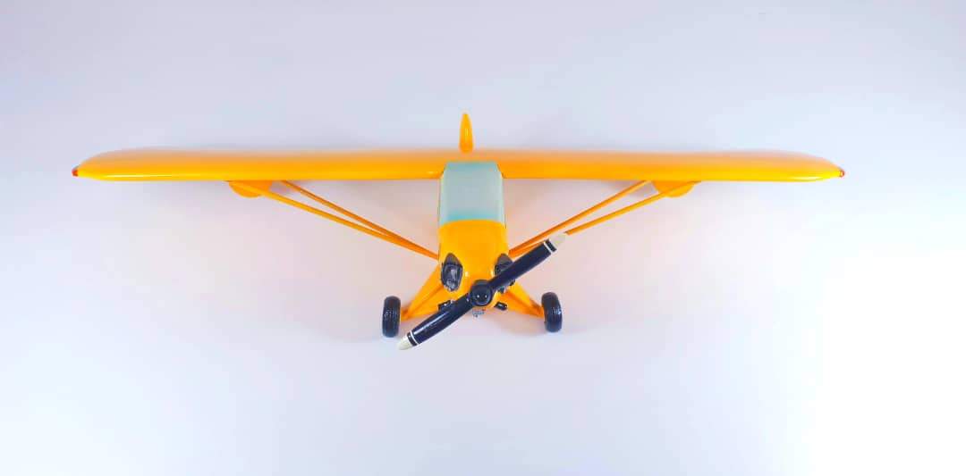 Yellow Piper Cub Airplane 3D Resin Wall Shelf. A Piper Cub is flying through the wall! No one would like an actual Piper Cub flying through the wall but the illusion of it is awesome! The Piper Cub Airplane Wall Decor is unique, intriguing and great for anywhere in the house. It creates a feeling of movement throughout the home and reminds of one's love of aviation!