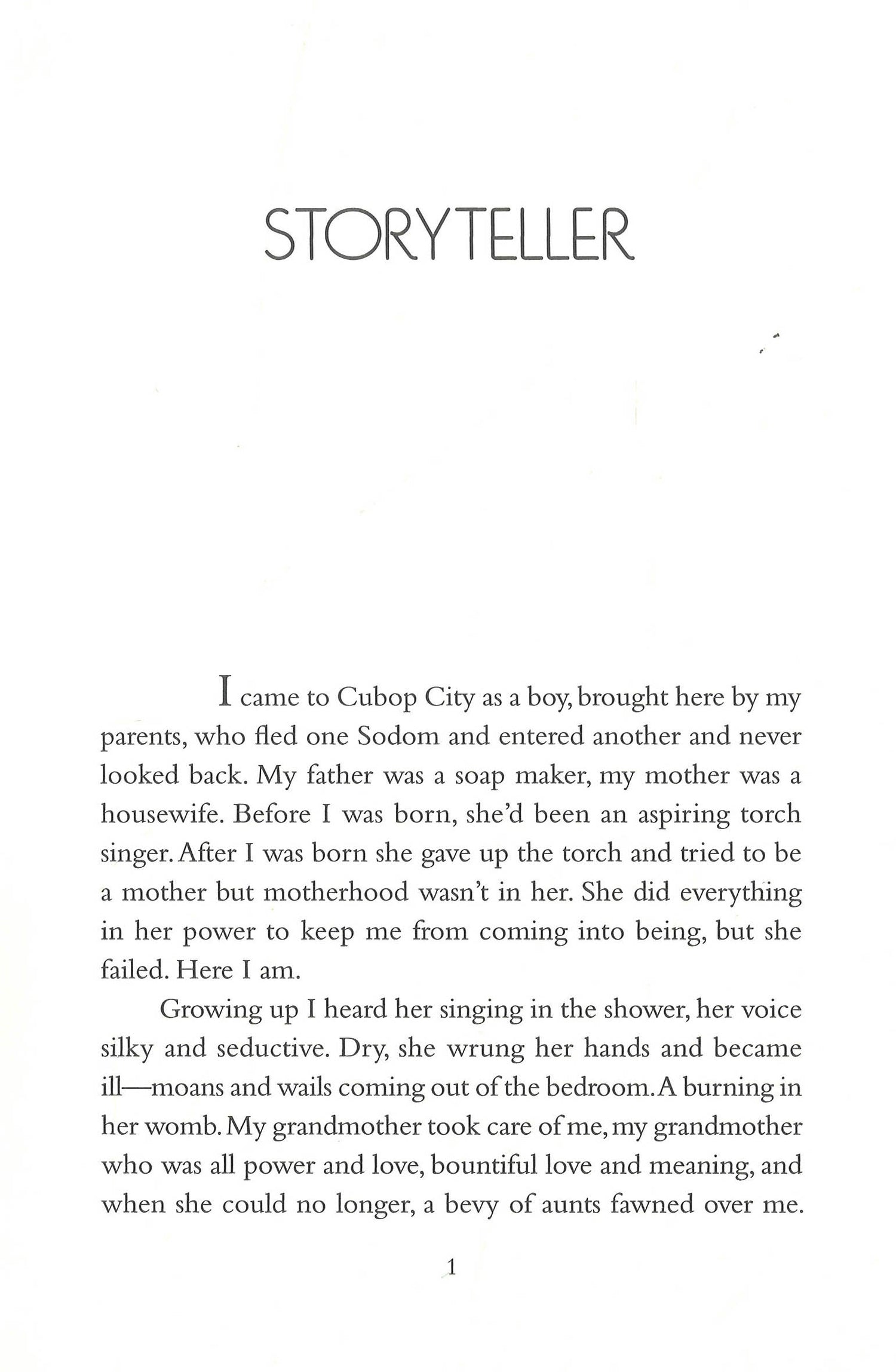 Through his talesfull of magic, sorrow, longing, loveCubop City surges to life. Moving through myriad points of view, The Storyteller imagines a world populated by both well-known figures like Chano Pozo and Jelly Roll Morton, and invented characters, most notably a mustachioed man who is stabbed by a stranger and embarks on a novel-long search for his attacker.