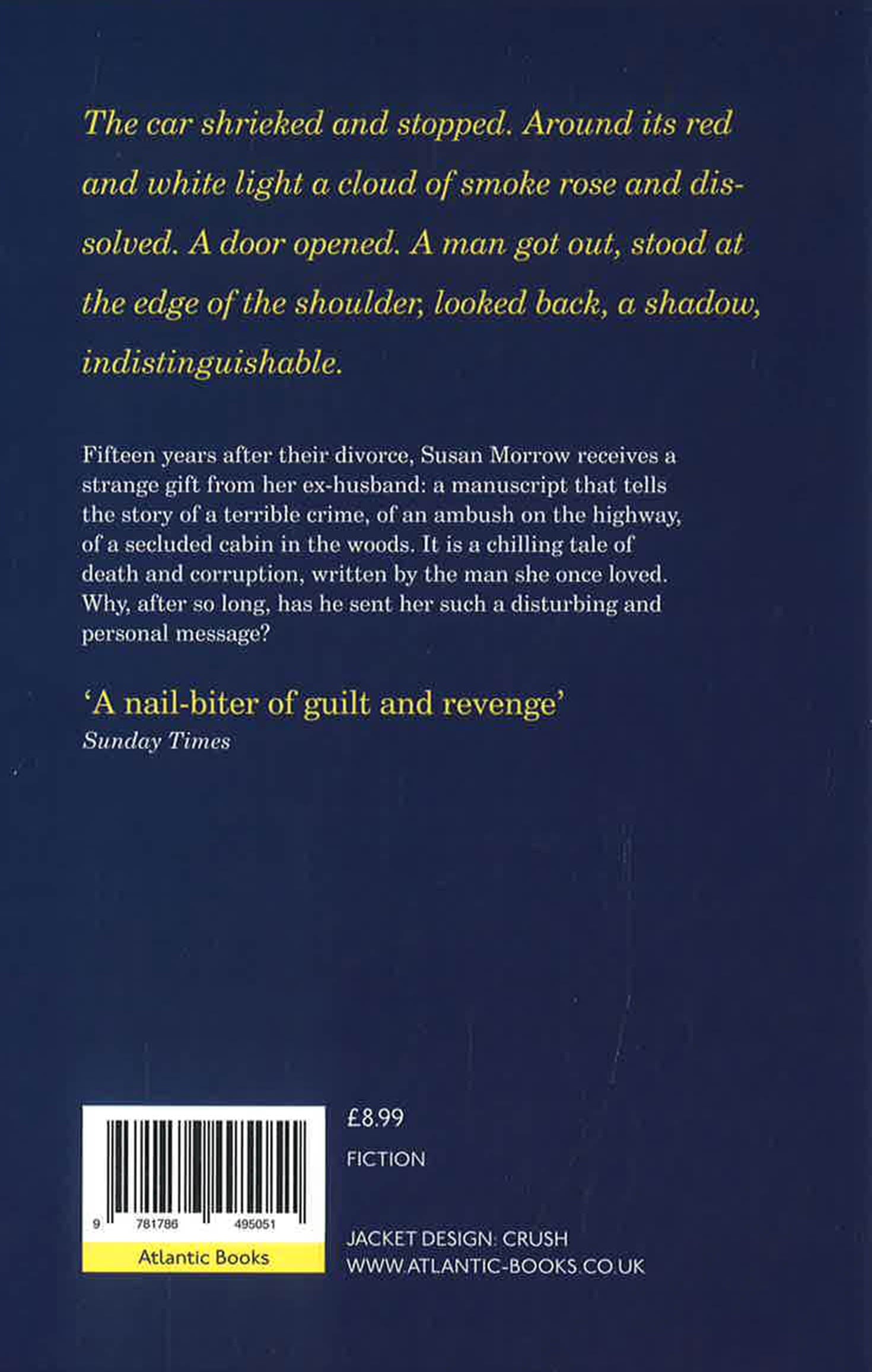 Fifteen years after their divorce, Susan Morrow receives a strange gift from her ex-husband: a manuscript that tells the story of a terrible crime, of an ambush on the highway, of a secluded cabin in the woods. It is a chilling tale of death and corruption, written by the man she once loved. Why, after so long, has he sent her such a disturbing and personal message?