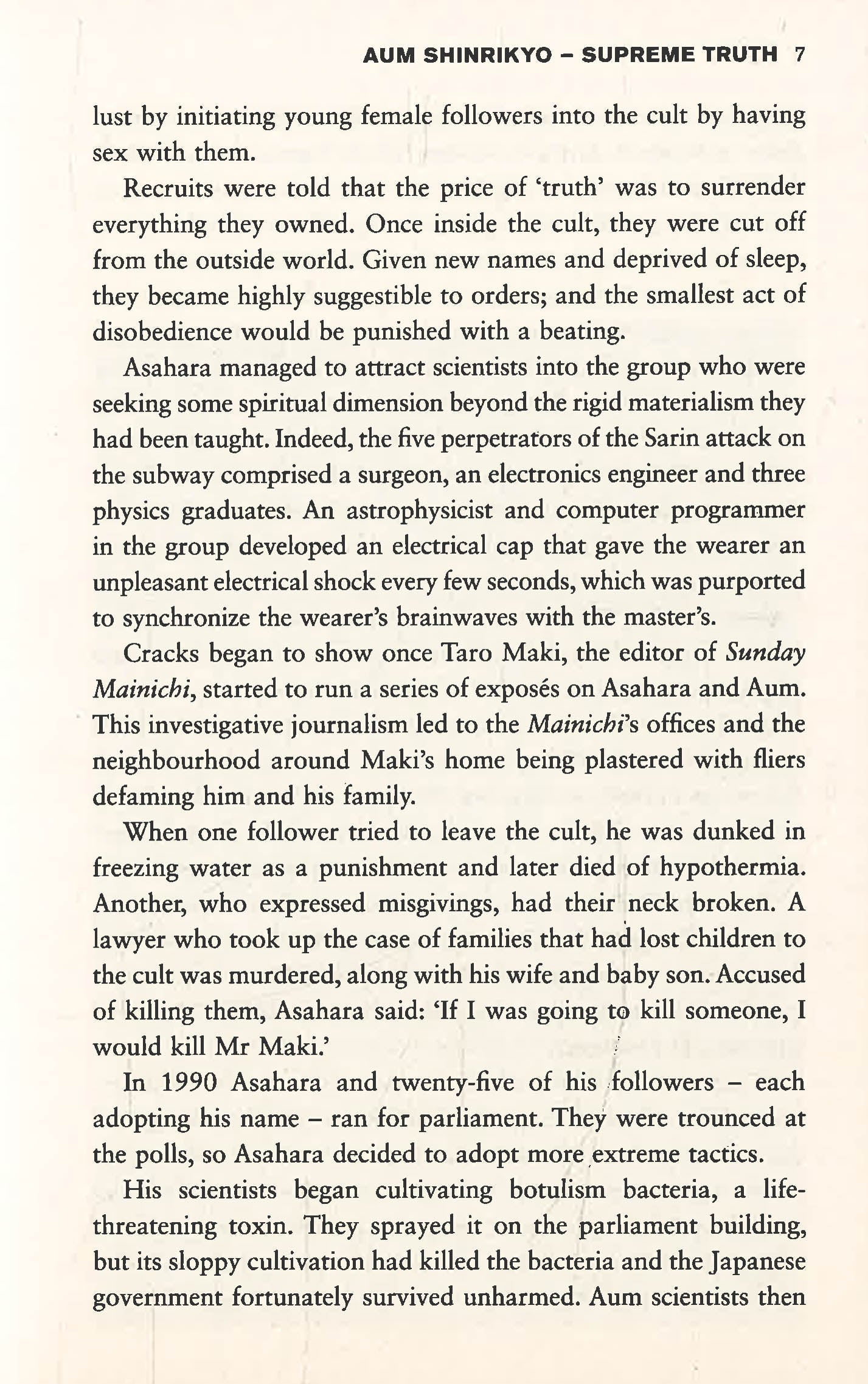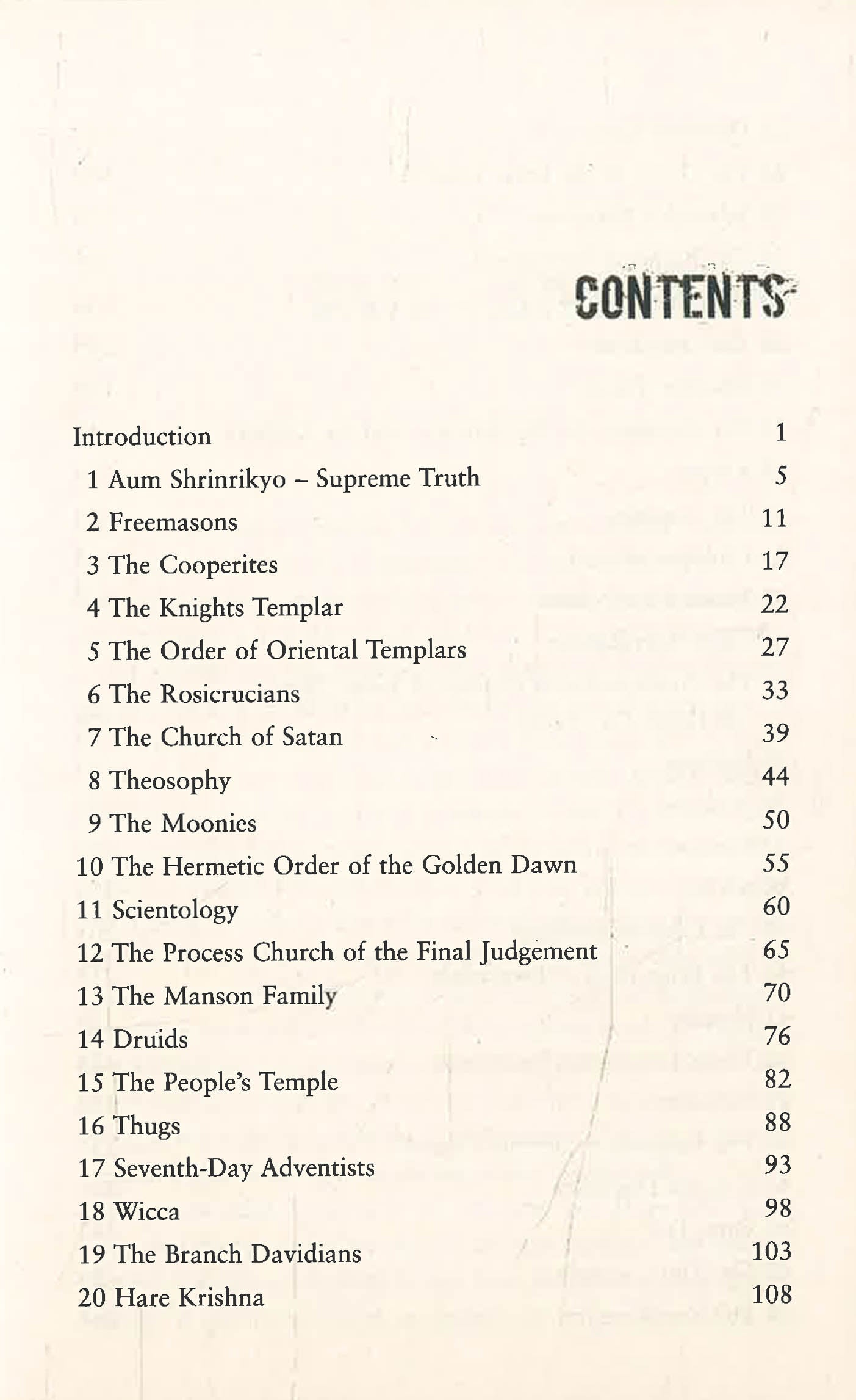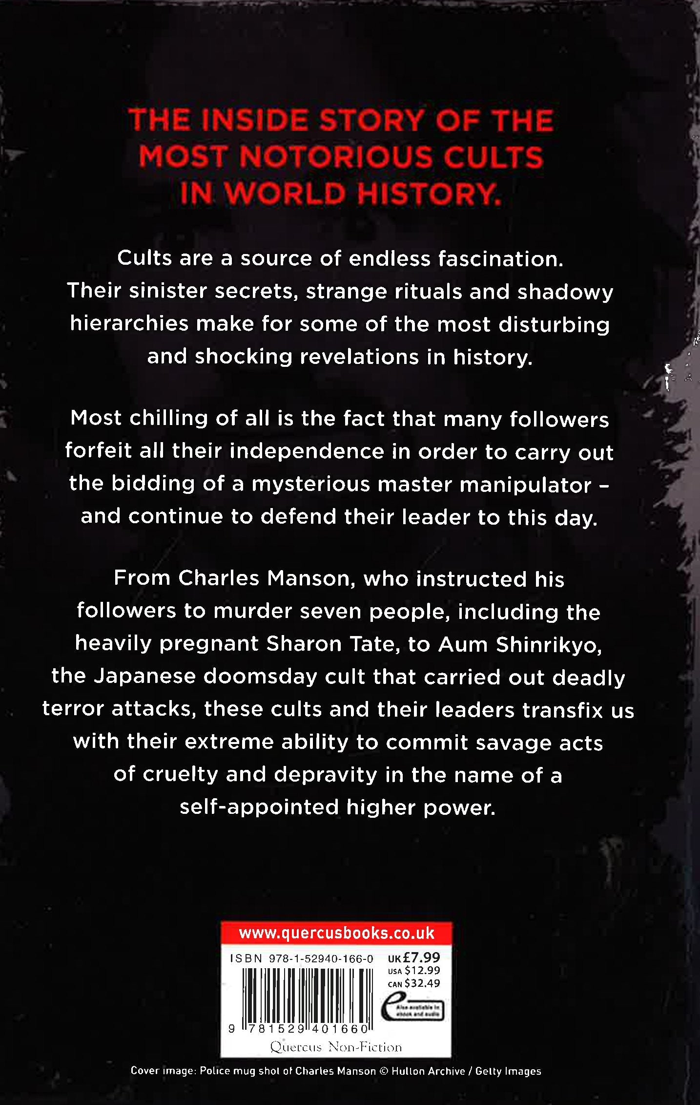 The inside story of the world's most notorious cults. The strange and sinister world of cults is a source of endless fascination. Their secrets, rituals and shadowy hierarchies make for some of the most disturbing and shocking revelations in history. Most chilling of all is the fact that many of their followers forfeit all independence in order to carry out the often sadistic bidding of a mysterious master manipulator - and continue to defend their leader to this day. From Charles Manson, who instructed his followers to murder seven people, including a heavily pregnant Sharon Tate, to Aum Shinrikyo, the Japanese doomsday cult that carried out deadly terror attacks, and the People's Temple, these cults and their leaders transfix us with their extreme ability to commit savage acts of cruelty and depravity in the name of a self-appointed higher power. Many shocking and international cults are brought to life, including: - The Manson Family- People's Temple- Colonia Dignidad- Thuggees- Aum Shinrikyo- Skopsty- Raelism- Heaven's Gate