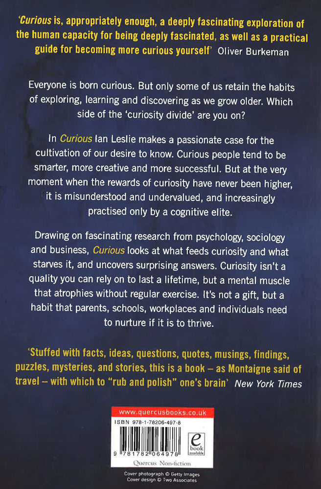 A fascinating multi-disciplinary analysis of why curiosity makes the world go round. A fascinating multi-disciplinary analysis of why curiosity makes the world go round.'A lovely, erudite exploration of what it is that makes us human' - Independent on Sunday'I have no special talents. I am only passionately curious' Albert Einstein. Everyone is born curious. But only some retain the habits of exploring, learning and discovering as they grow older. Which side of the 'curiosity divide' are you on? In Curious Ian Leslie makes a passionate case for the cultivation of our desire to know. Curious people tend to be smarter, more creative and more successful. But at the very moment when the rewards of curiosity have never been higher, it is misunderstood and undervalued, and increasingly practised only by a cognitive elite. Drawing on fascinating research from psychology, sociology and business, Curious looks at what feeds curiosity and what starves it, and uncovers surprising answers. Curiosity isn't a quality you can rely on to last a lifetime, but a mental muscle that atrophies without regular exercise. It's not a gift, but a habit that parents, schools, workplaces and individuals need to nurture if it is to thrive. Filled with inspiring stories, case studies and practical advice, Curious will change the way you think about your own mental life, and that of those around you.