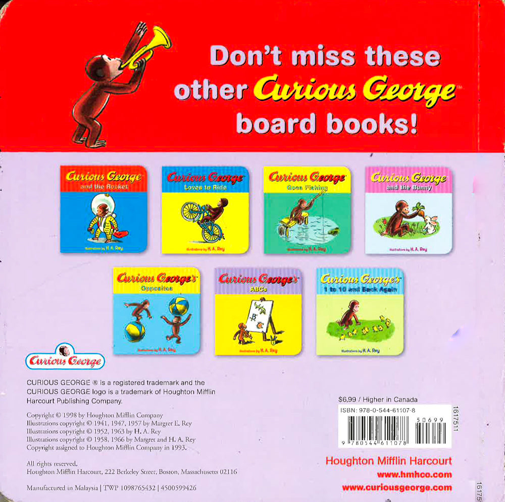Do you ever feel happy? Are you sometimes loud? Have you ever felt scared, or hurt, or proud? Children can explore their feelings and emotions right along with George in this playful board book with sturdy pages. The classic artwork of H. A. Rey will make this a favorite to be read again and again. Add the other Curious George board books--Curious George's ABCs, Curious George's Opposites, and Curious George's 1 to 10 and Back Again--to your collection for even more story time fun!