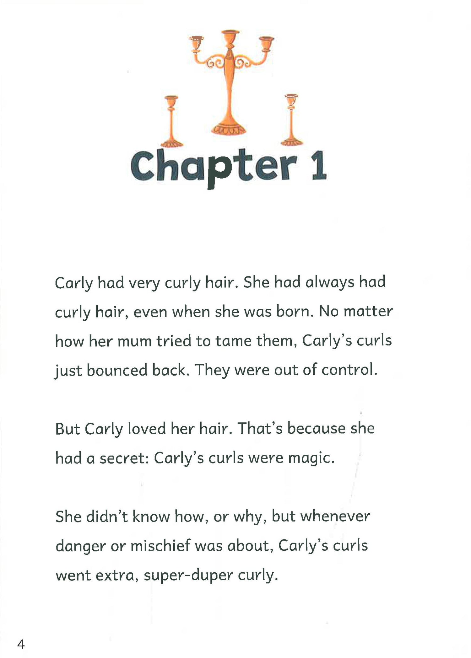 Carly had a secret. Her hair was magic! Whenever danger or mischief was about, Carly's curls went extra, super-duper curly. One day, her hair goes extra curly on an ordinary school trip...