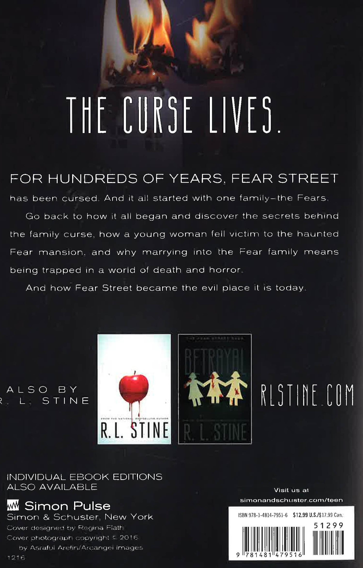 For hundreds of years, Fear Street has been cursed. And it all started with one family - the Fears.Go back to how it all began and discover the secrets behind the family curse, how a young woman fell victim to the haunted Fear mansion, and why marrying into the Fear family means being trapped in a world of death and horror.And how Fear Street became the evil place it is today.
