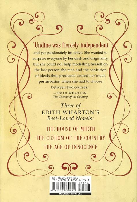 This book is a bindup of three novels by Edith Wharton: "The Custom of the Country", "The House of Mirth", and "The Age of Innocence". It is part of the Fall River Classics line of jacketed hardbacks, being brought out to coincide with an 8-part mini-series adaptation of the title novel featuring Scarlett Johansson.