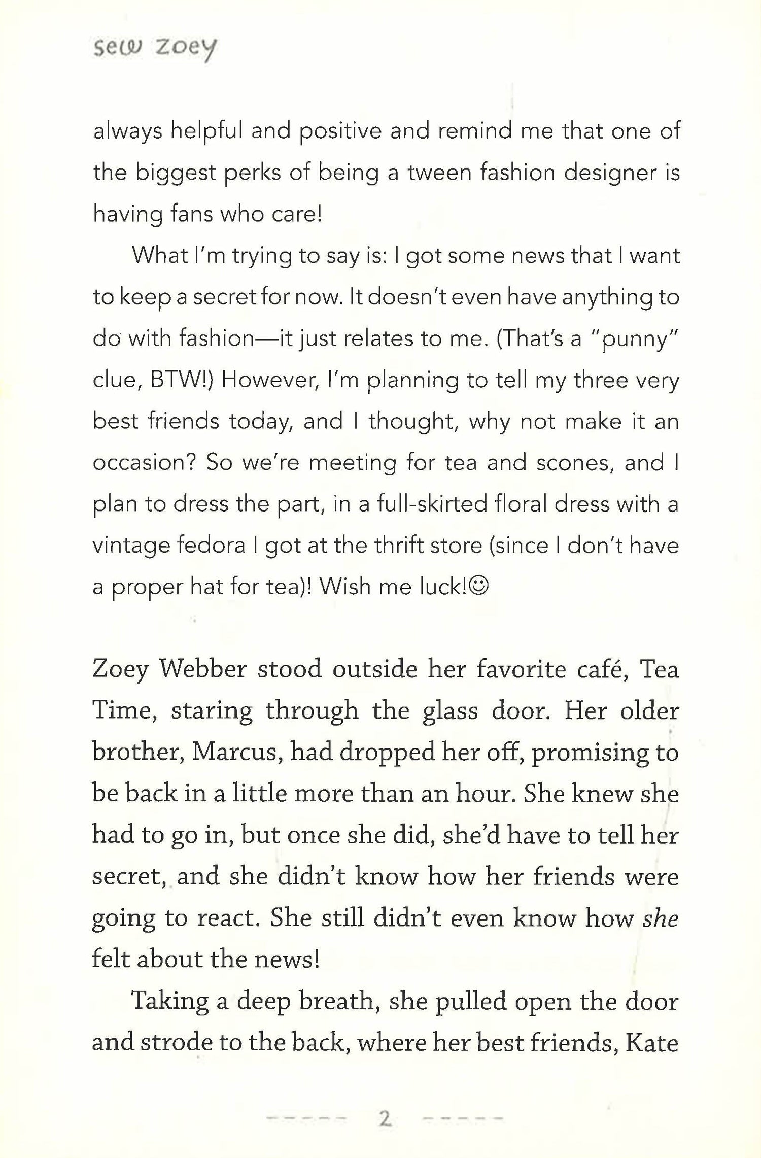 When Zoey Webber is invited to be a star contestant on Fashion Showdown Junior, it makes news headlines: She’s going to travel the world competing with other young designers . . . and might even have her own runway show! But there’s even bigger news at home: Zoey’s aunt Lulu is about to have a baby, and Zoey’s dad has finally announced the identity of the mystery woman he’s been dating. Zoey isn’t sure she’s ready for anyone to fill her mom’s shoes, even if she is the perfect fit! But in fashion and in life, unexpected twists can turn into something wonderful. When the fabric of her family changes forever, can Zoey make it work?