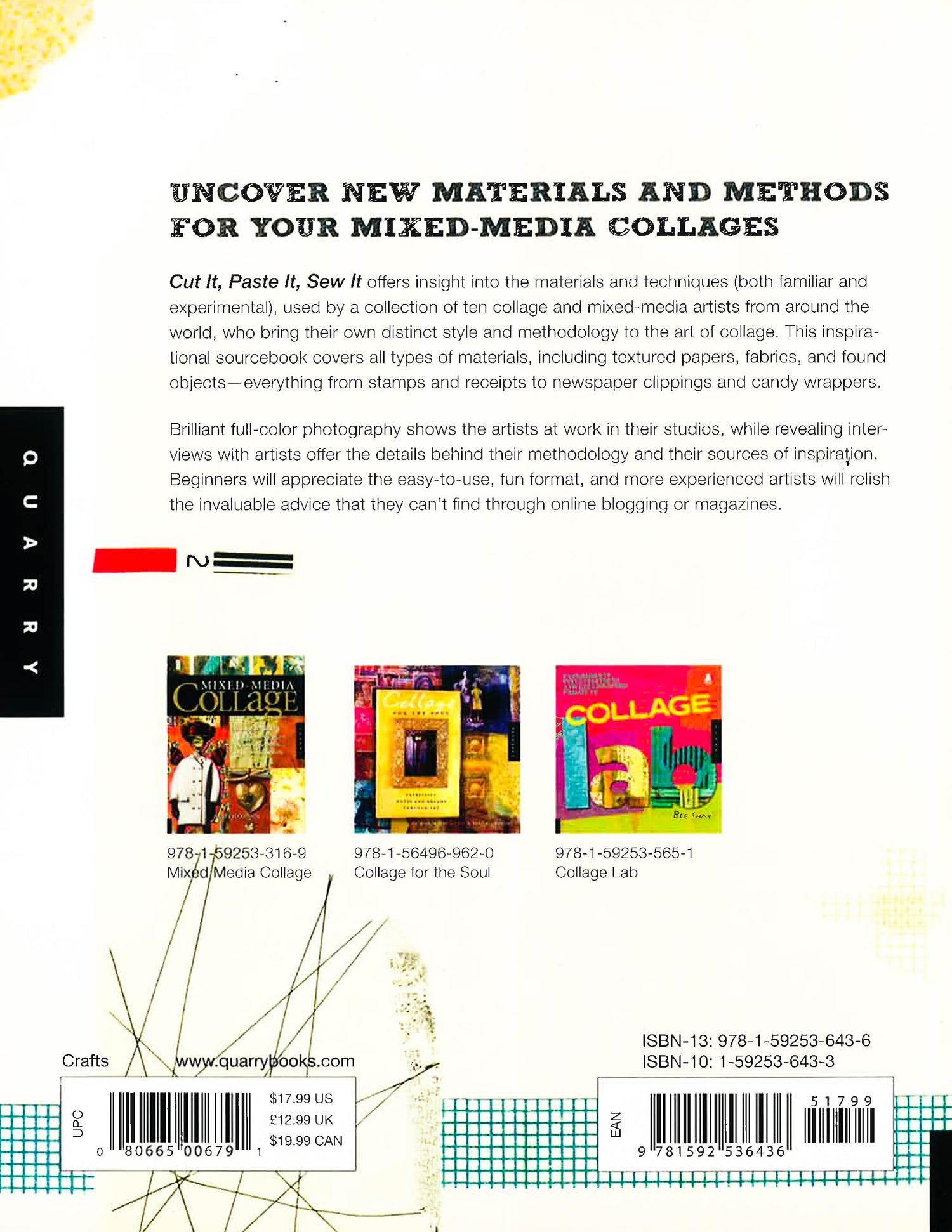 Cut It, Paste It, Sew It" offers both insight into the materials, techniques in both familiar and experimental, and inspiration from a collection of 10 international artists who bring their own distinct style and methodology to the art of collage. The book covers all types of materials including paper, fabric, wood, and found objects. It shows the artists at work in their studios as well as providing information on their work process and their sources of inspiration. This book is unique and new in the material it features, with a high-design-style presentation that is unique in itself. This book offers completely original materials and methodology from talented designers and artists that have not been seen before. The content is presented in an easy and fun presentation that makes it accessible to beginners while at the same time inspiring to more experienced artists with content that isn't available through online blogging or magazines. show more