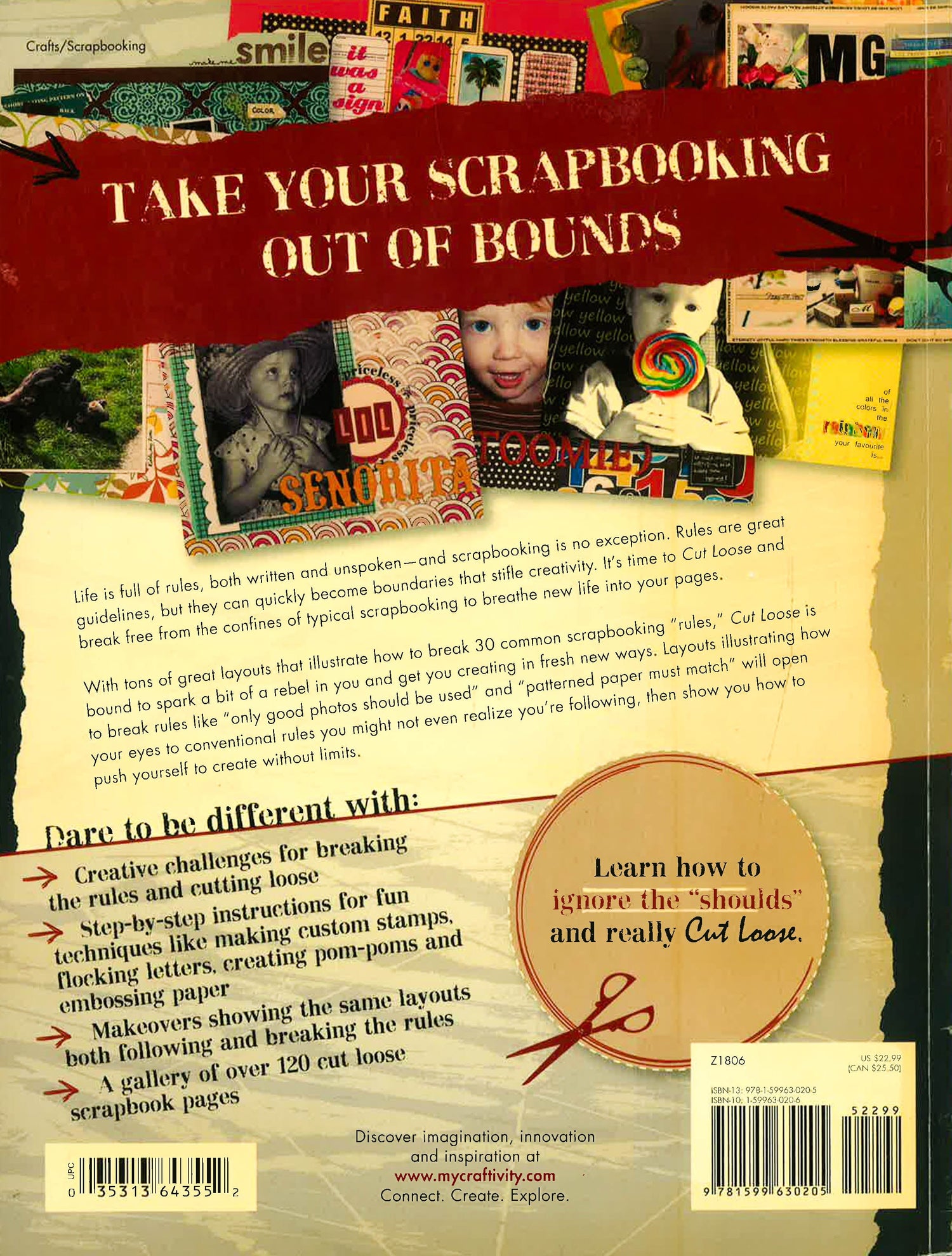 Life is full of rules, both written and unspoken - and scrapbooking is no exception. Rules are great guidelines, but they can quickly become boundaries that stifle creativity. It's time to Cut Loose and break free from the confines of typical scrapbooking to breathe new life into your pages.With tons of great layouts that illustrate how to break 30 common scrapbooking "rules," Cut Loose is bound to spark a bit of rebel in you, and get you creating in fresh new ways. Layouts illustrating how to break rules like "only good photos should be used" and "patterned paper must match" will open your eyes to conventional rules you might not even realize you're following, then show you how to push yourself to create without limits.