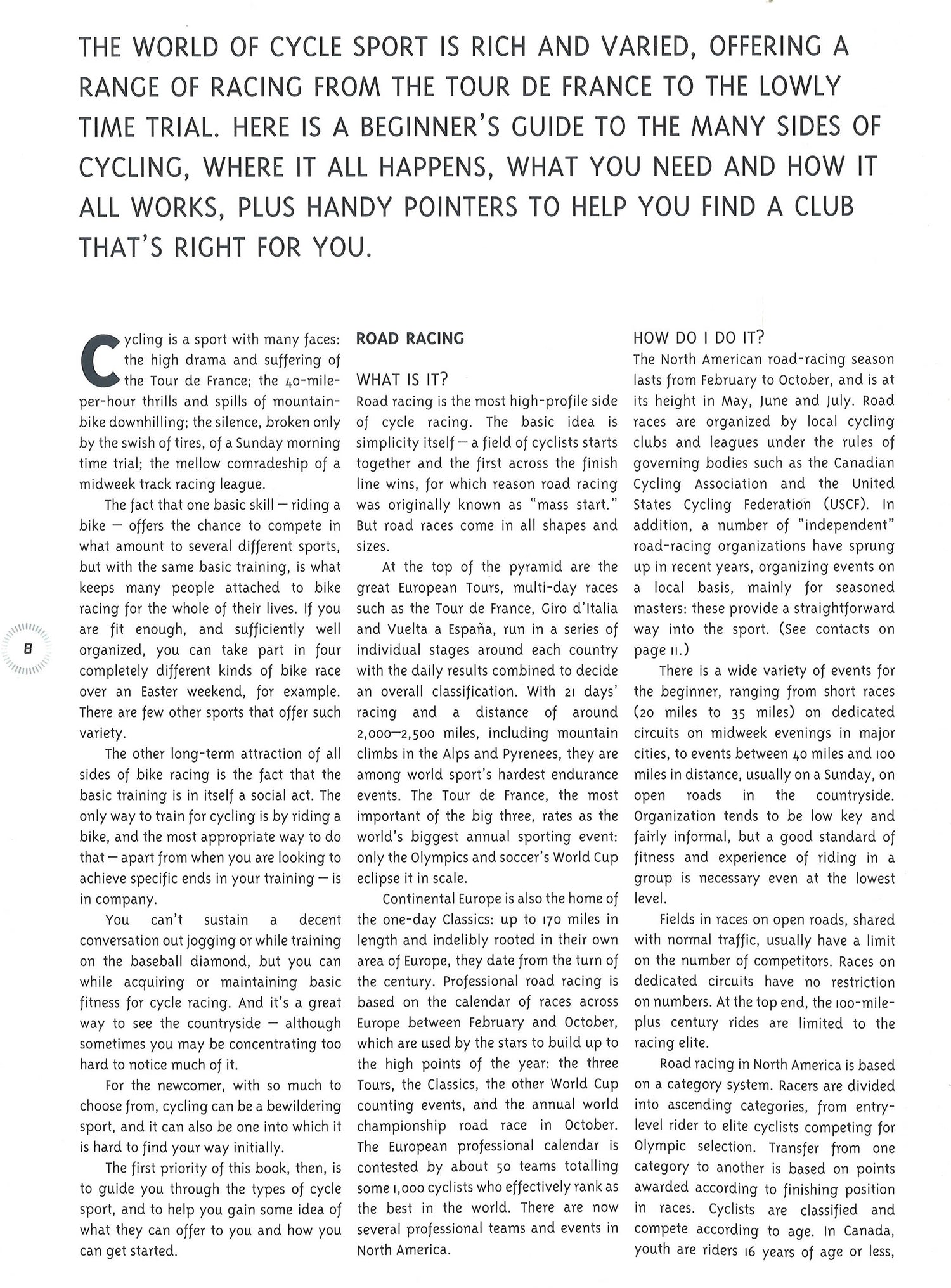 A practical, well-illustrated guide to competitive cycling, including equipment, fitness training, eating, psychology, event rules and winning strategies. All major competitive divisions included.