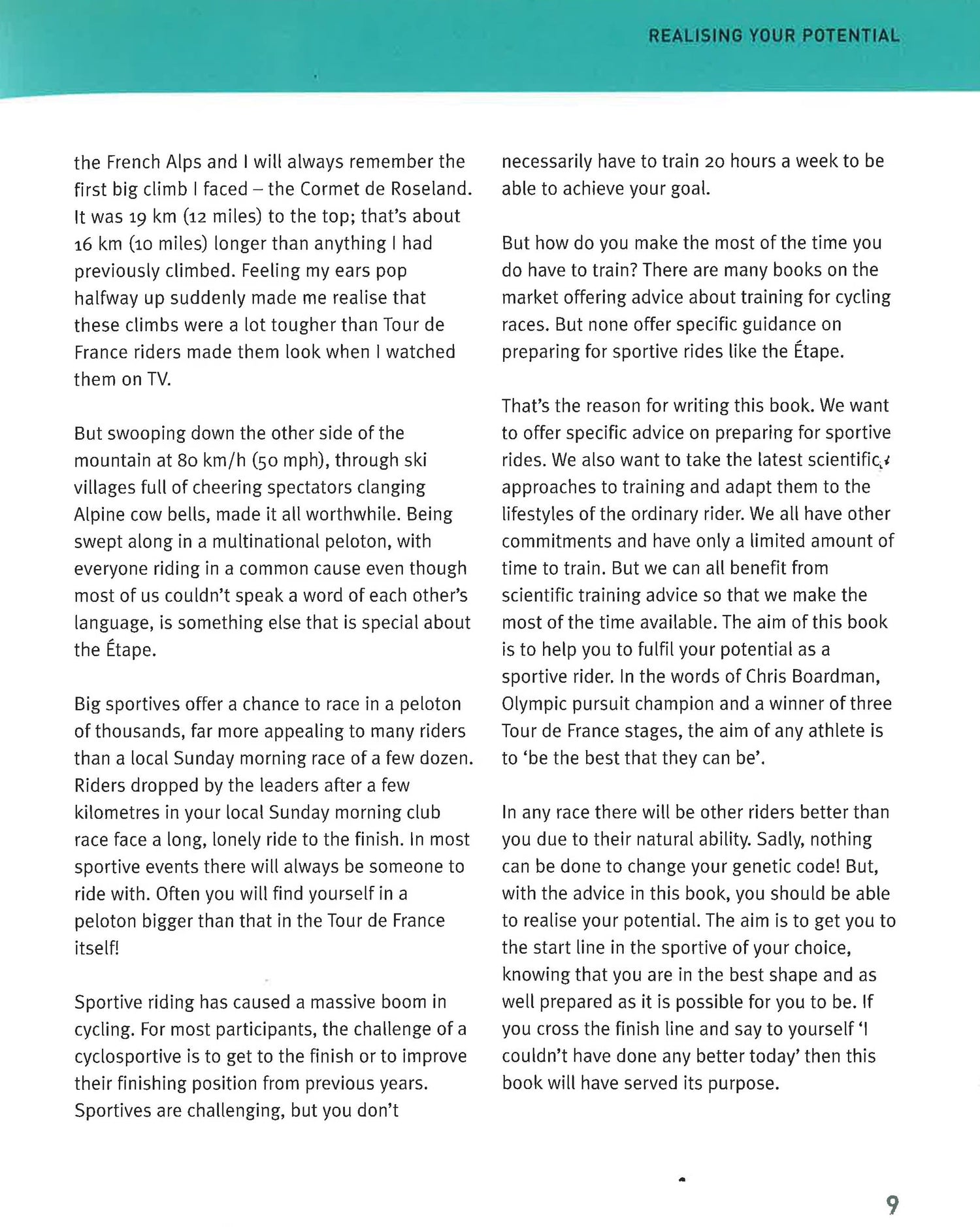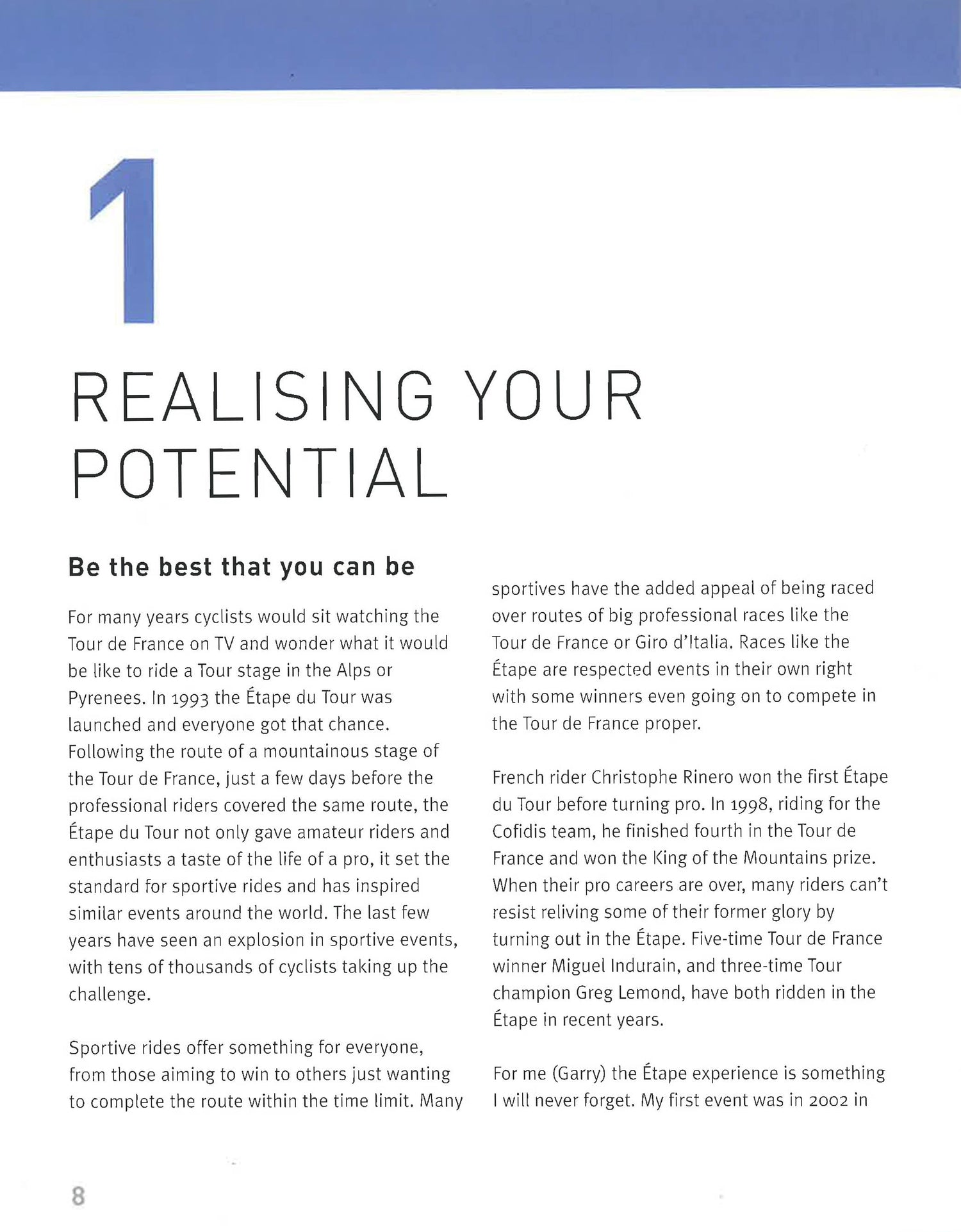 Elite Performance: Cycling is the first in a new series of Elite Performance titles aimed at aspiring recreational athletes who typically train and compete at club level and above. The book is aimed at long-distance cyclists, with specific reference to sportive riding - well-known sportives include the Etape du Tour, which covers one day of a mountain section from the professional Tour de France and attracts over 3,000 competitors each year from the UK alone. The increased use of lab-based sports testing in recent years has considerably raised awareness of the impact of sports science on training and performance, and many coaches, trainers and athletes are looking for more information and guidance on how to apply this knowledge to their own training. This approach is at the heart of the Elite Performance: Cycling, which includes structuring a training programme, training phases, goal-setting, physiological assessment, principles of heart rate training, power creation and output, different levels of training and how and when to use them, nutrition, rest and recovery, tapering and over-training. There is also a section on race day preparations and planning. With a practical full-colour design and packed with stunning colour photography, Elite Performance: Cycling is an indispensable companion for the long-distance rider.