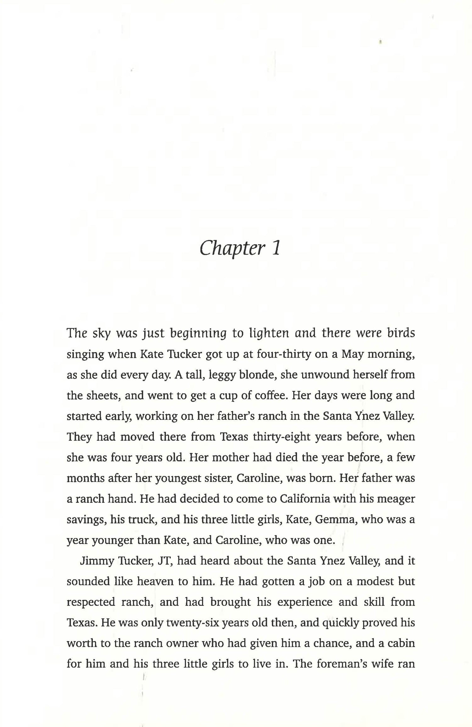 Decades ago, after the death of his wife, Texas ranch hand JT Tucker took his three small daughters to California to start a new life. With almost no money, a will of iron, and hard work, he eventually built the biggest ranch in California. But when he dies suddenly at the age of sixty-four, the ranch is inherited by his three daughters—each of them finding it impossible to believe that this larger-than-life figure is gone from their lives.