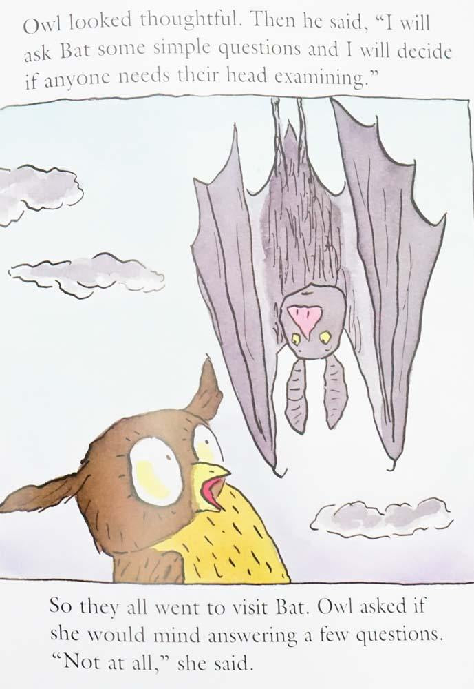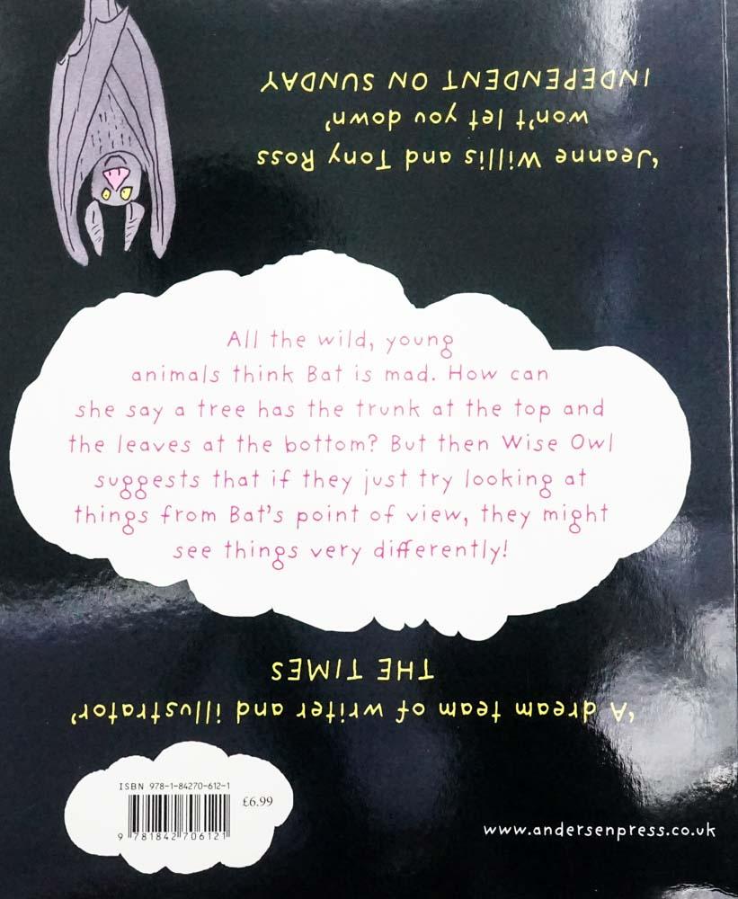 All the young wild animals think Bat is mad. How can she say a tree has the trunk at the top and the leaves at the bottom? Until, that is, they consult wise Owl who suggests that if they just try looking at things from Bat's point of view, they might see thing very differently.