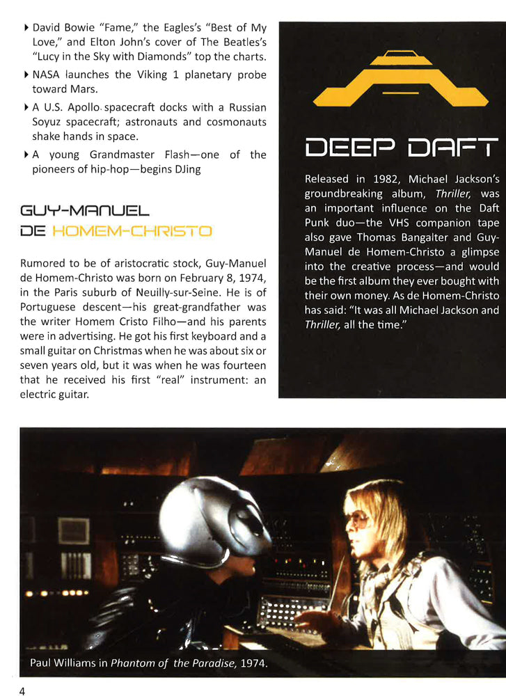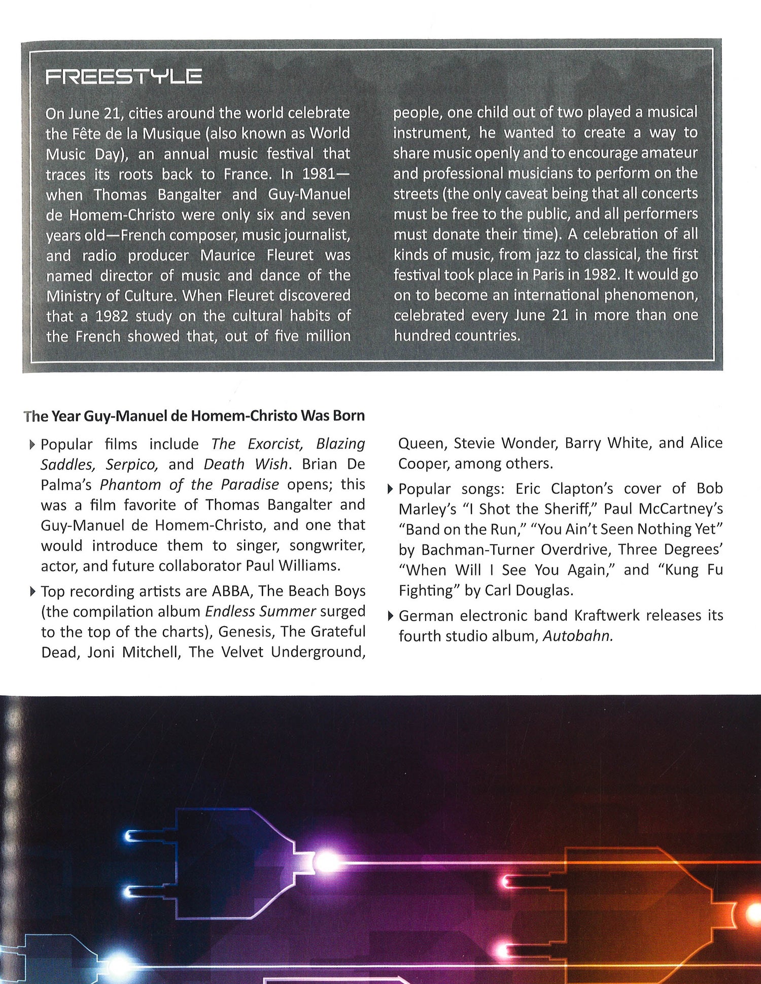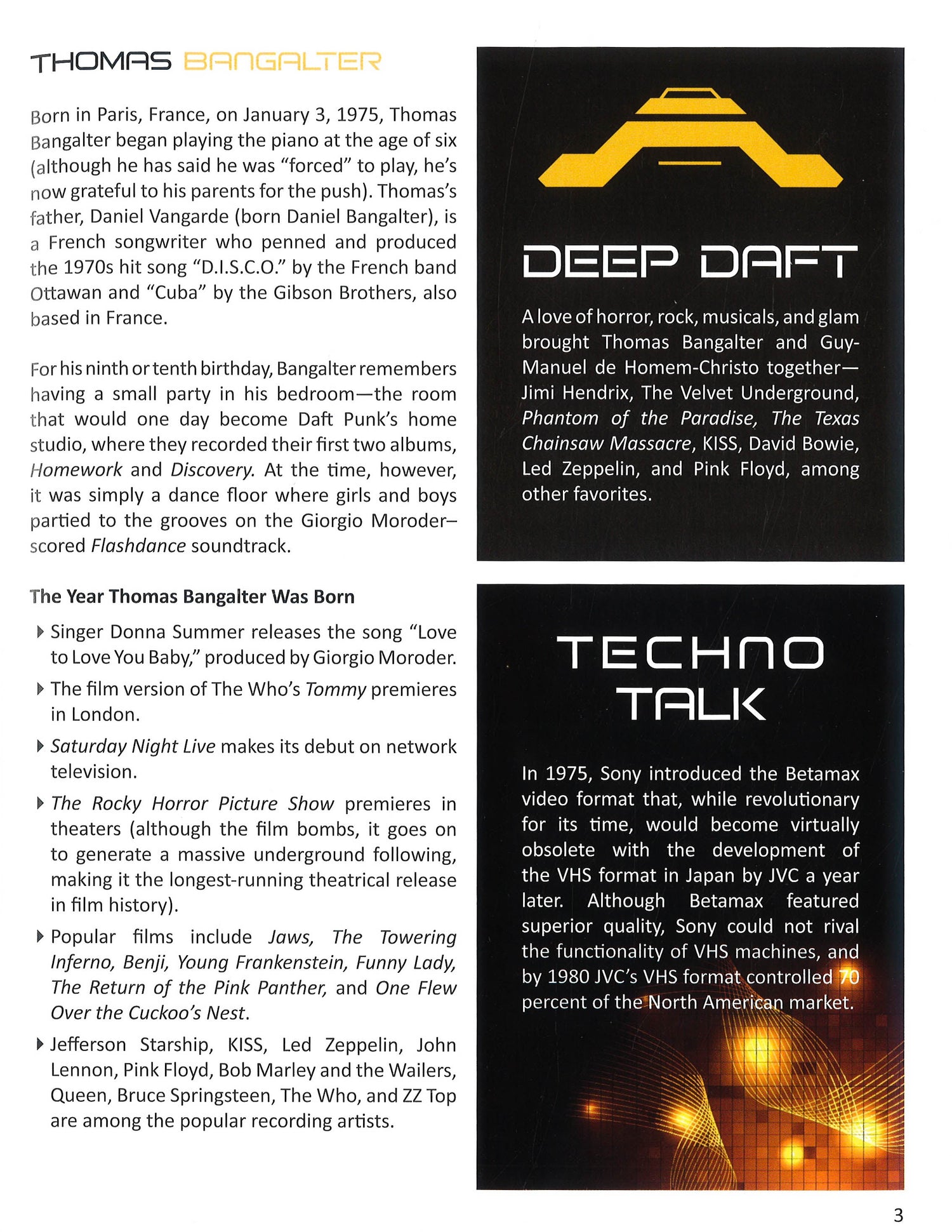 This illustrated biography of the popular French electronic music duo known for wearing space helmets discusses the group's history revolutionizing house music in the 1990s through their recent rise to international superstardom.
