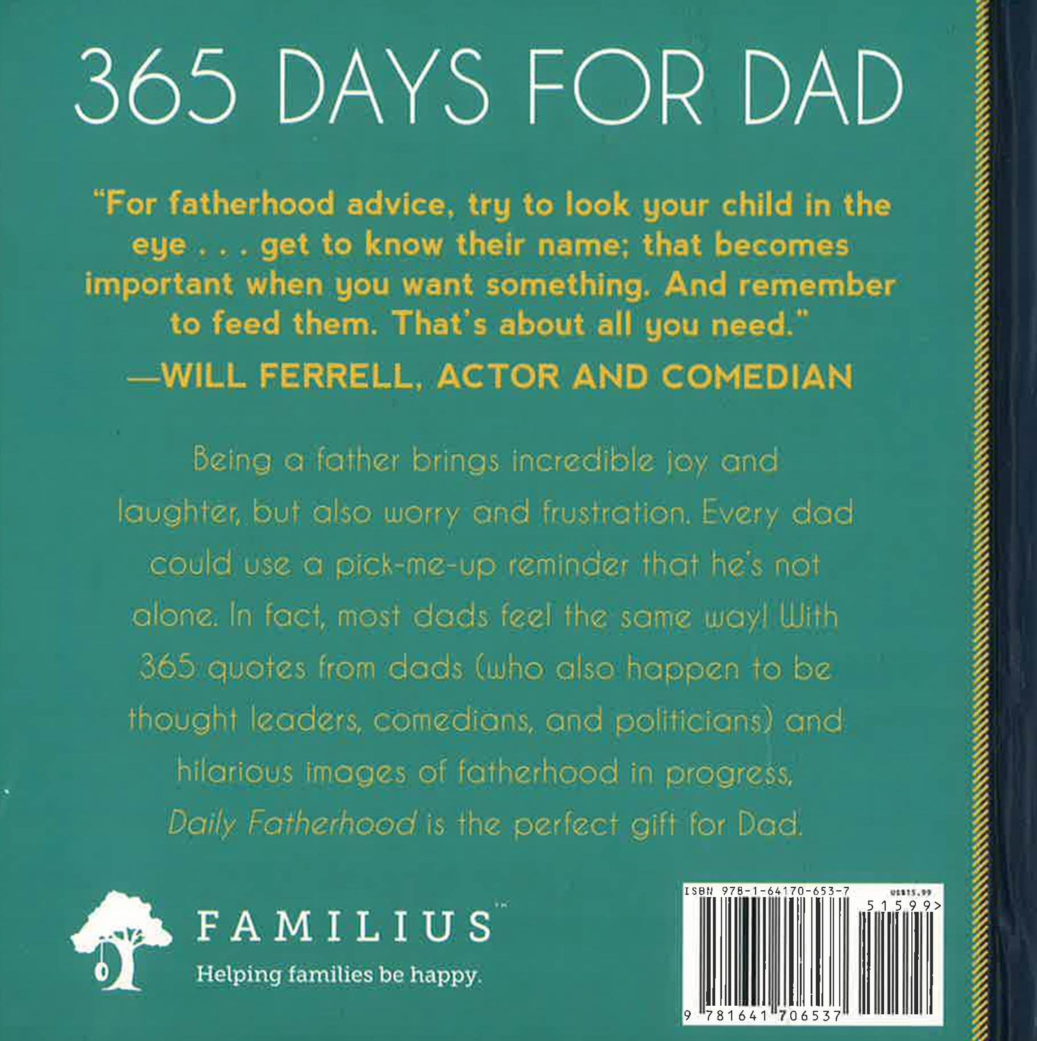 Being a father brings incredible joy and laughter, but also worry and frustration. Every dad could use a pick-me-up reminder that he’s not alone. In fact, most dads feel the same way! With 365 quotes from dads (who also happen to be thought leaders, comedians, and politicians) and hilarious images of fatherhood in progress, Daily Fatherhood is the perfect gift for Dad.