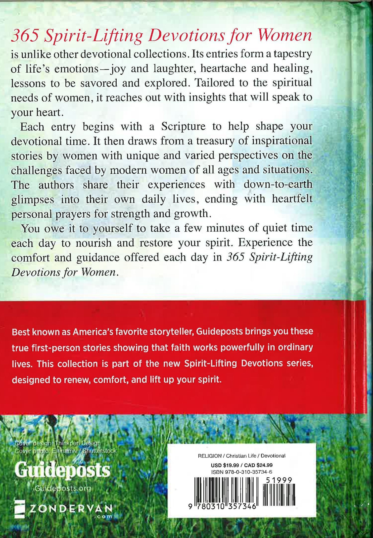 Spirit-filled devotionals, written by women for women, from the editors of Daily Guideposts, America's favorite devotional for more than 40 years 365 Spirit-Lifting Devotions for Women forms a tapestry of life's emotions - joy and laughter, heartache and healing, lessons to be savored and explored. Tailored to the spiritual needs of women, it reaches out with insights that will speak to your heart. Each entry begins with a Scripture verse to help shape your devotional time. It then draws from a treasury of inspirational stories from Daily Guideposts favorites such as Debbie Macomber, Marion Bond West, Sharon Ewell Foster, and more with unique and varied perspectives on the challenges faced by modern women of all ages and situations. The authors share their experiences with down-to-earth glimpses into their own daily lives, ending with heartfelt personal prayers for strength and growth. You owe it to yourself to take a few minutes of quiet time each day to nourish and restore your spirit. Experience the comfort and guidance offered each day in 365 Spirit-Lifting Devotions for Women.