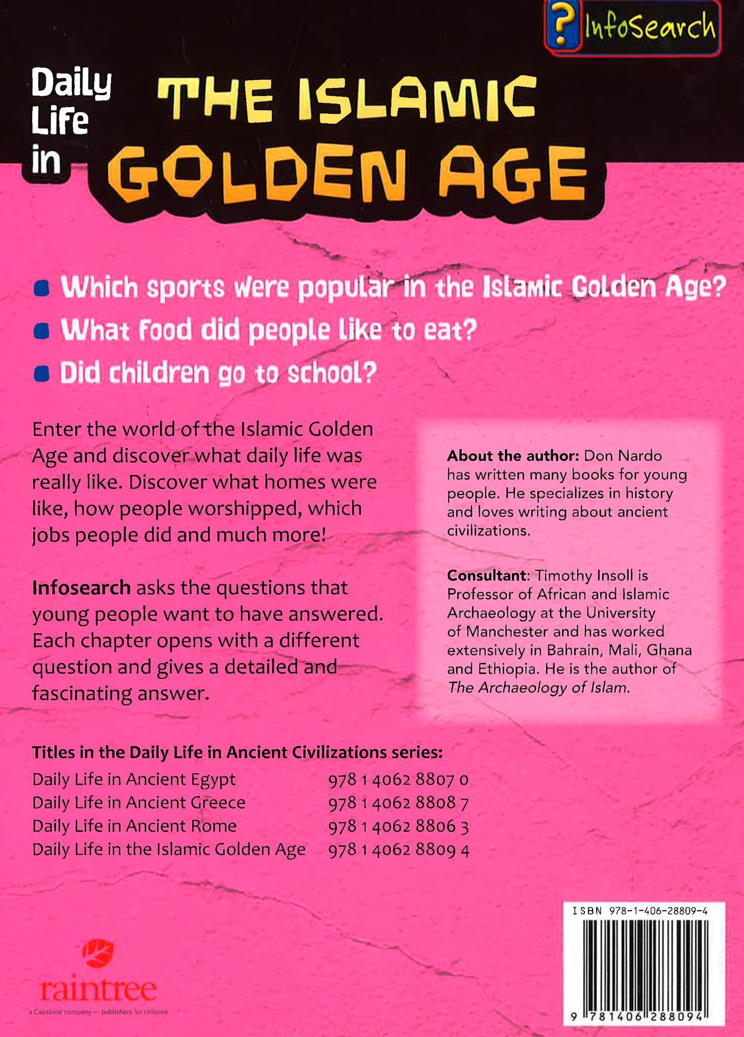 This book explores what life was really like for everyday people in the Islamic Golden Age,including Baghdad around AD900. Using primary sources and information from archeological discoveries, it uncovers some fascinating insights and explodes some myths. Supported by timelines, maps and references to important events and people, children will really feel they are on a time-travelling journey when reading this book.