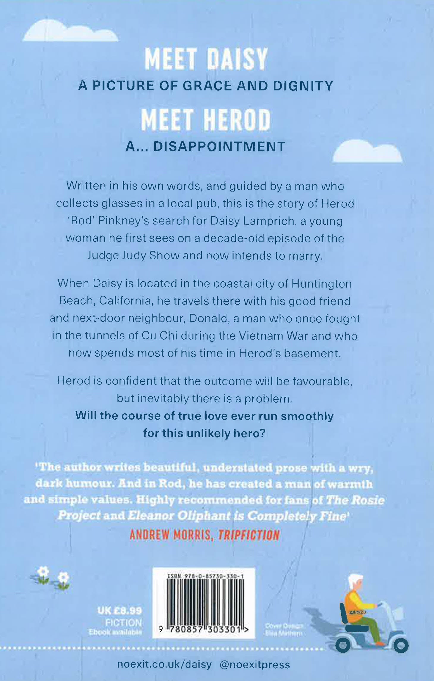 Written in his own words, and guided by a man who collects glasses in a local pub, this is the story of Herod ‘Rod’ Pinkney’s search for Daisy Lamprich, a young woman he first sees on a decade-old episode of the Judge Judy Show, and who he now intends to marry.