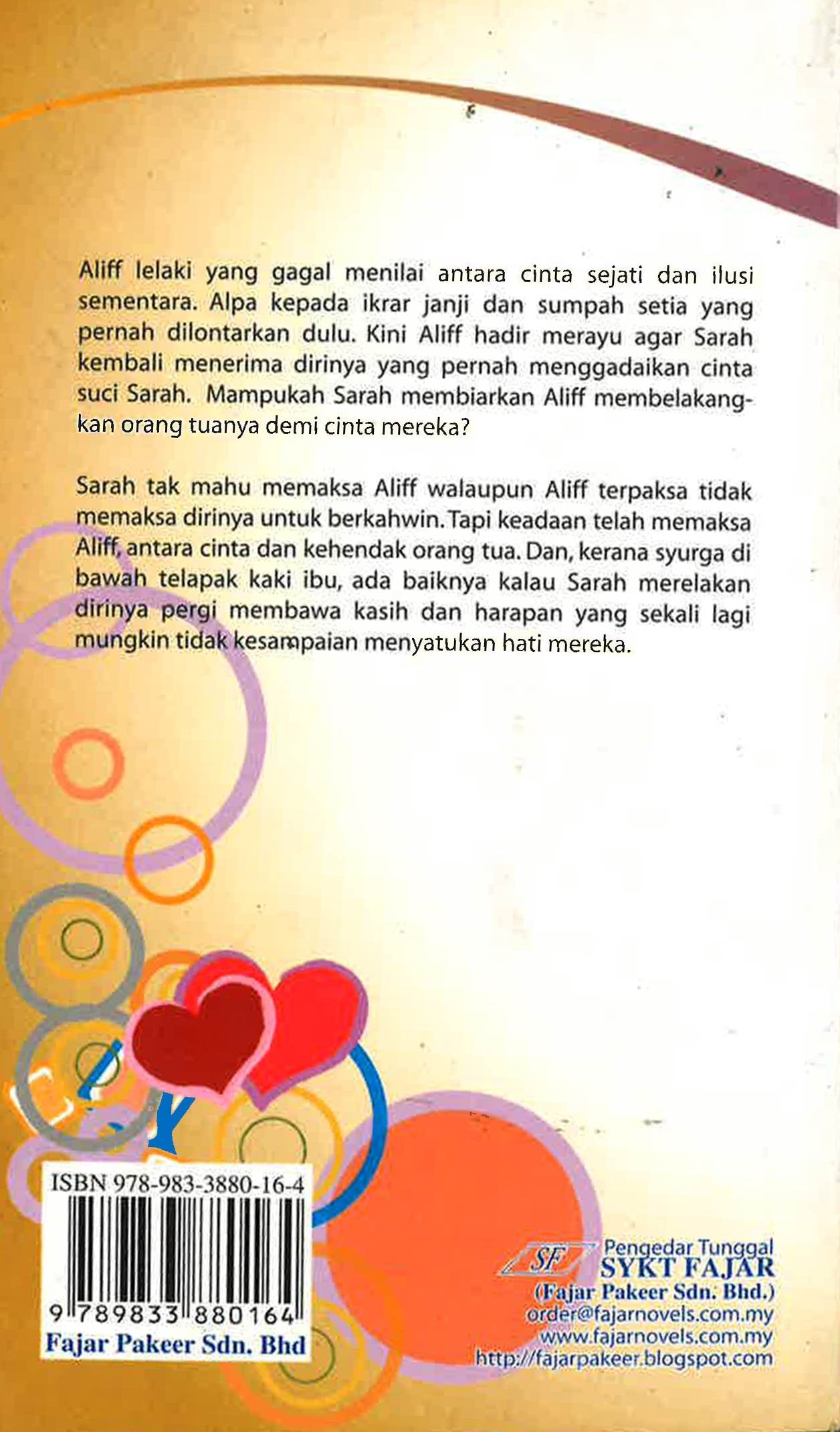 Aliff lelaki yang gagal menilai antara cinta sejati dan ilusi sementara. Alpa kepada ikrar janji dan sumpah setia yang pernah dilontarkan dulu. Kini Aliff hadir merayu agar Sarah kembali menerima dirinya yang pernah menggadaikan cinta suci Sarah. Mampukah Sarah membiarkan Aliff membelakangkan orang tuanya demi cinta mereka?