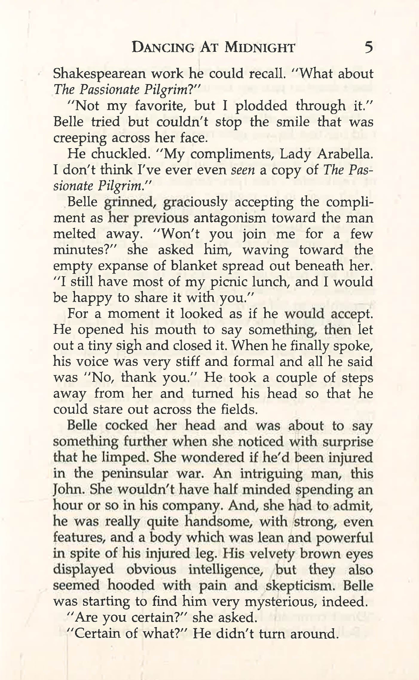 Lord John has lived through the worst horrors of war, but to him nothing has been as terrifying as Lady Arabella. She is intoxicating, infuriating - and she makes him want to live again. Suddenly he's writing bad poetry and climbing trees in the pitch-dark night - just so he can dance with her. And even though he knows he can never be the sort of man she deserves, he can't help wanting her. But when the harsh light of day replaces the magic of midnight, can this tormented soul learn to love again?