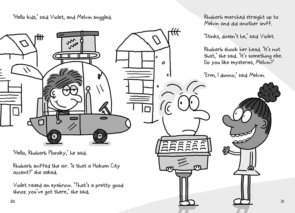 Soon Melvin and Rhubarb are on the trail of a mystery – one that is going to lead them right into the centre of the donut hole& And Rhubarb might actually have something to write about in her newspaper, if they make it out alive.