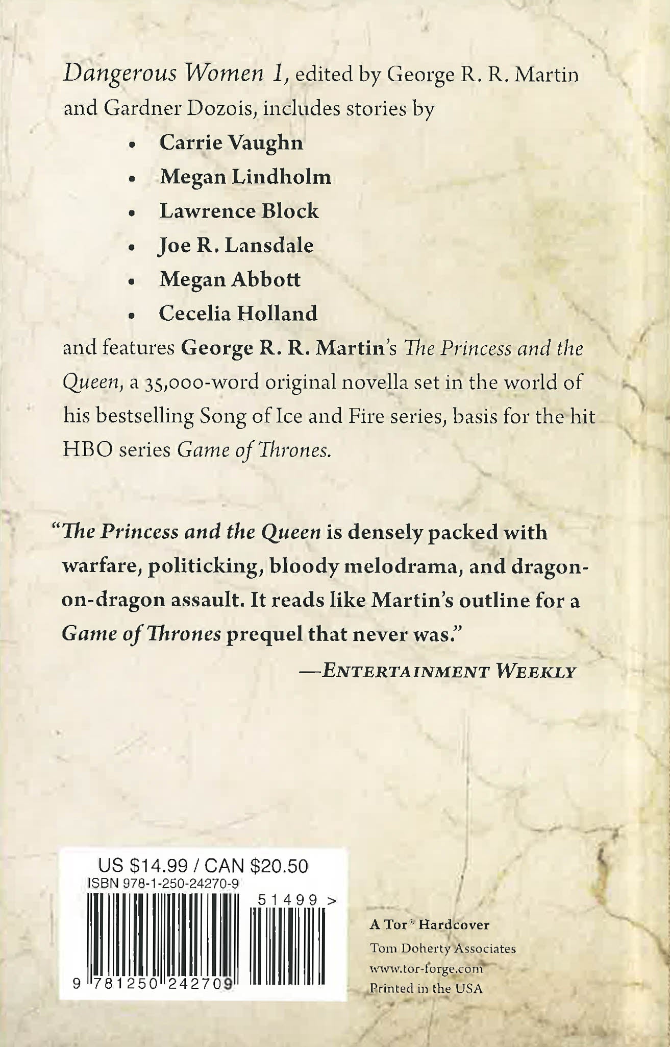 Now in a special pocket-sized hardcover gift edition, Dangerous Women Vol. 1, edited by George R. R. Martin and Gardner Dozois, features George R. R. Martin's The Princess and the Queen, a 35,000-word original novella set in the world of his bestselling Song of Ice and Fire series, basis for the hit HBO series Game of Thrones.