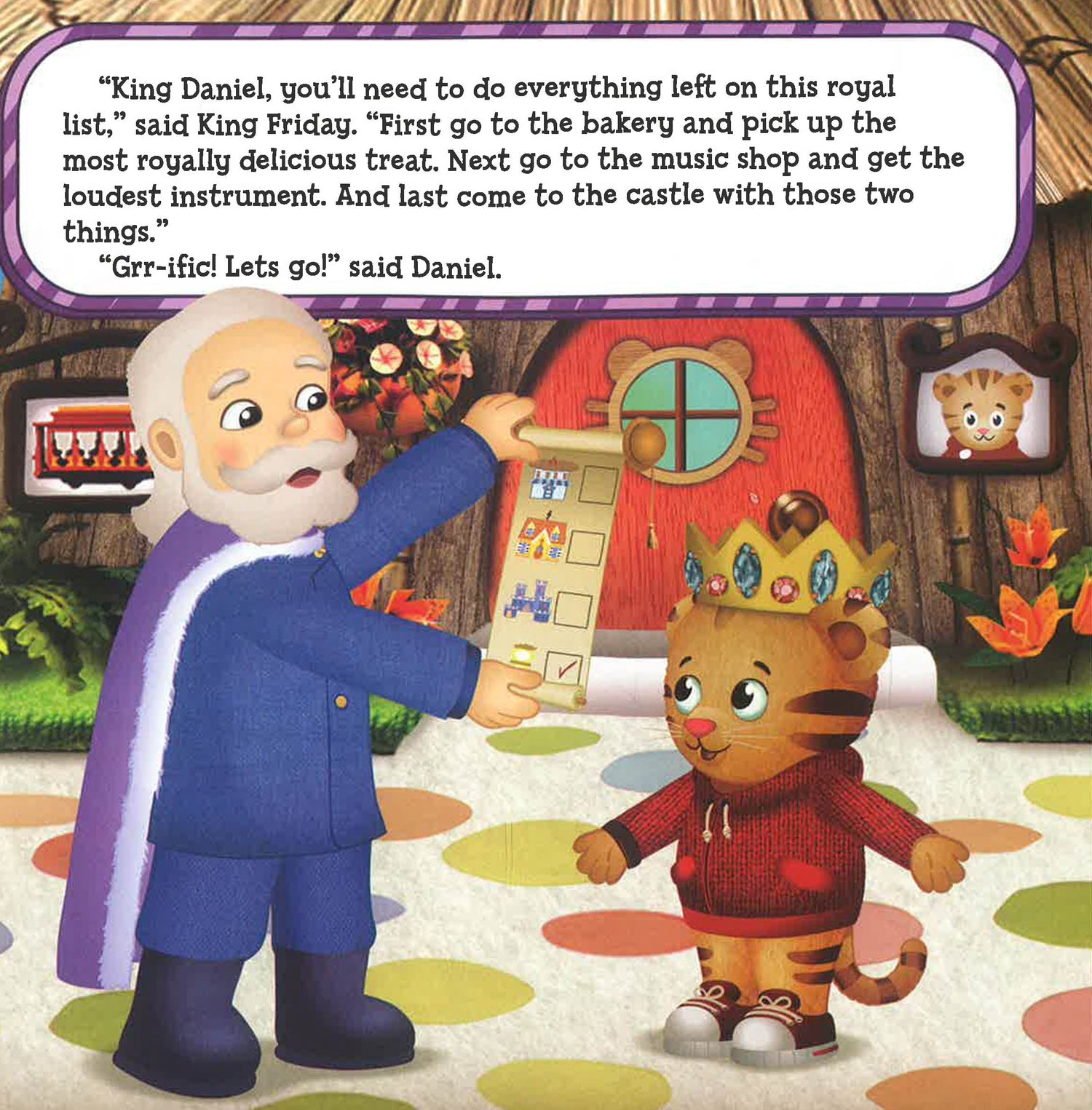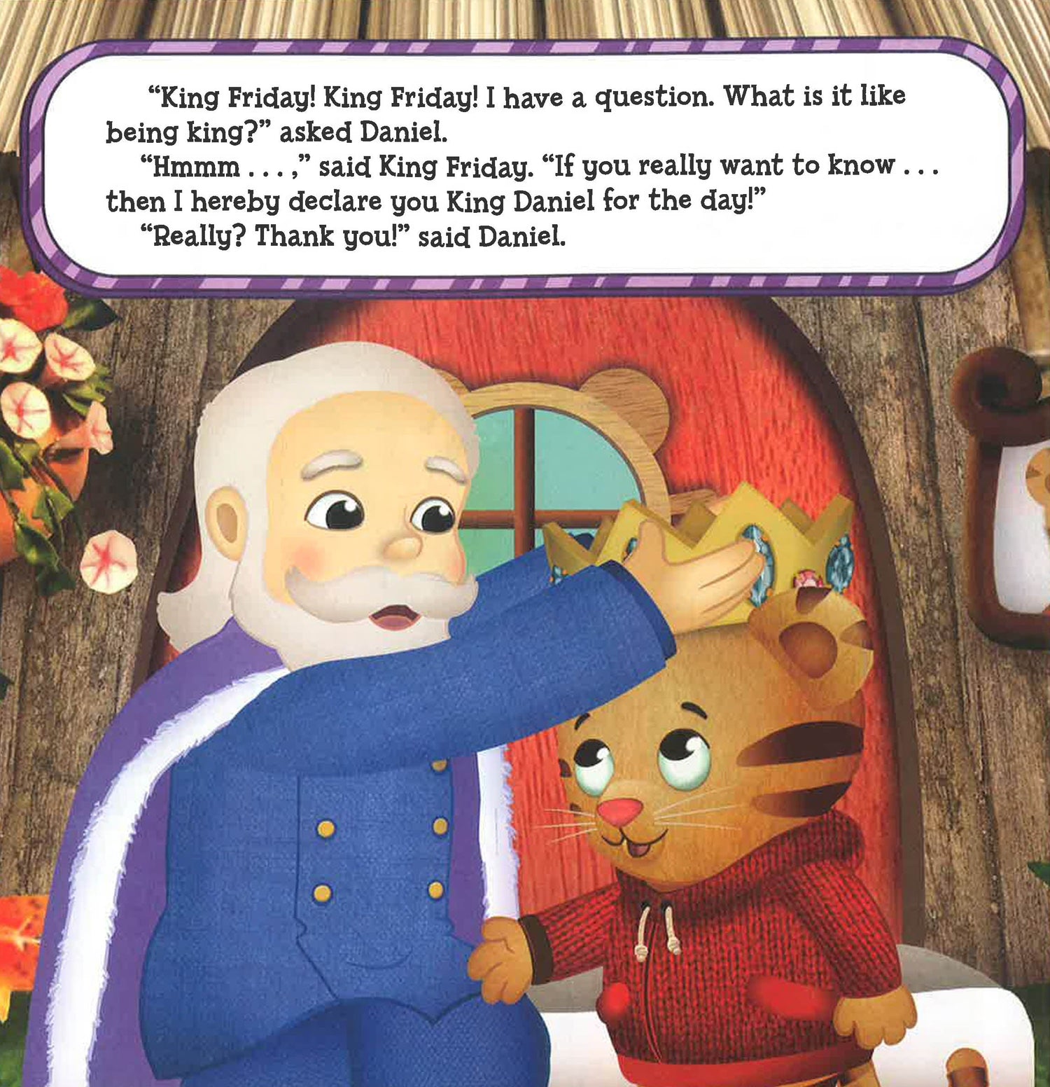 When King Friday makes Daniel king for the day, the honor comes with royal duties. Daniel must gather a royally sweet treat and the loudest instrument he can find. Then he must bring them both to the castle. Above all, though, Daniel must treat others with kindness.