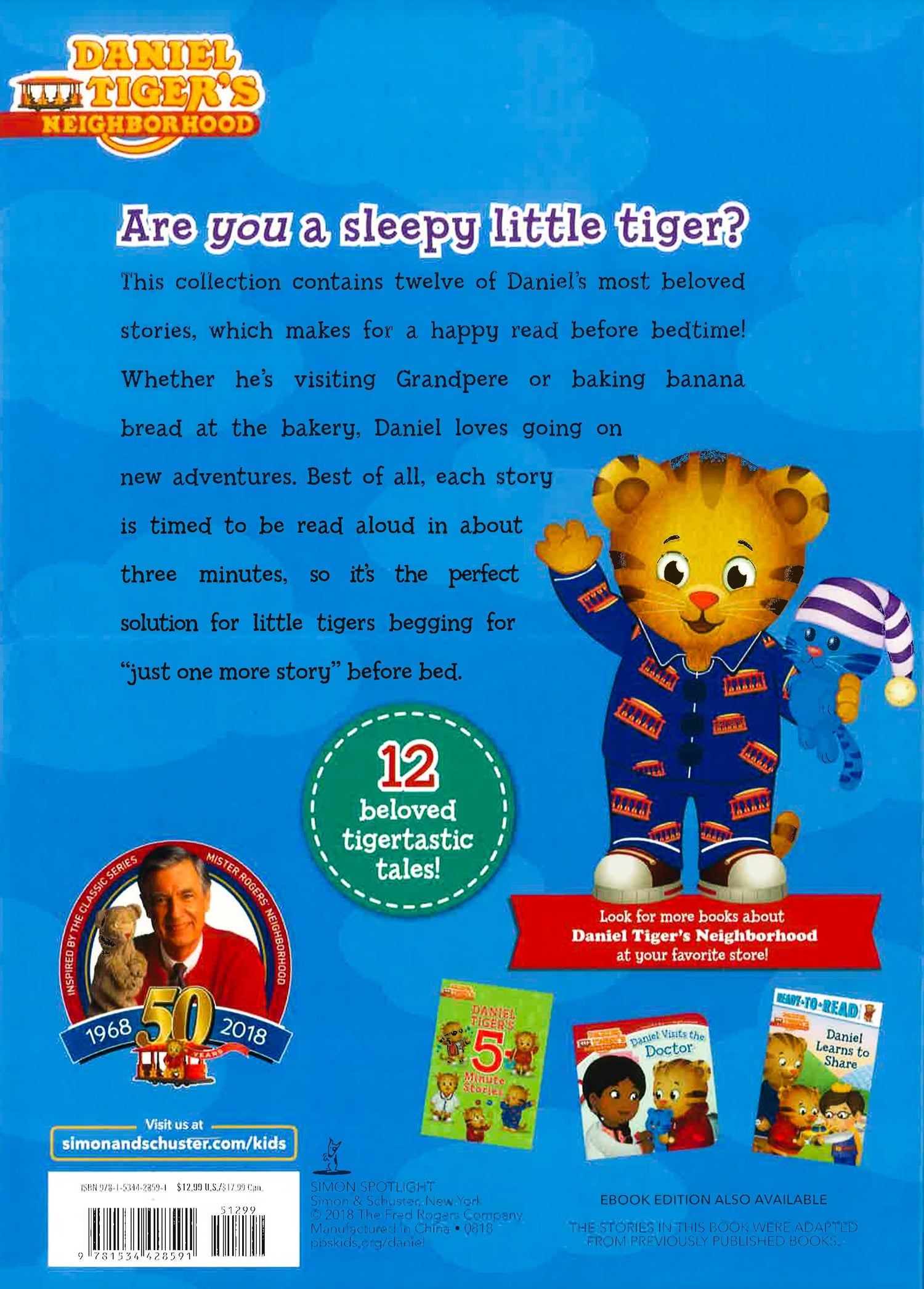 Whether he's playing in the snow, exploring nature at night, or visiting family, Daniel Tiger loves making friends and going on new adventures! Would you like to come along? This treasury includes twelve of Daniel's most grr-ific stories, each of which can be read aloud in three minutes. This sweet collection is perfect for little tigers who are settling down for bedtime and want to hear just one more story!