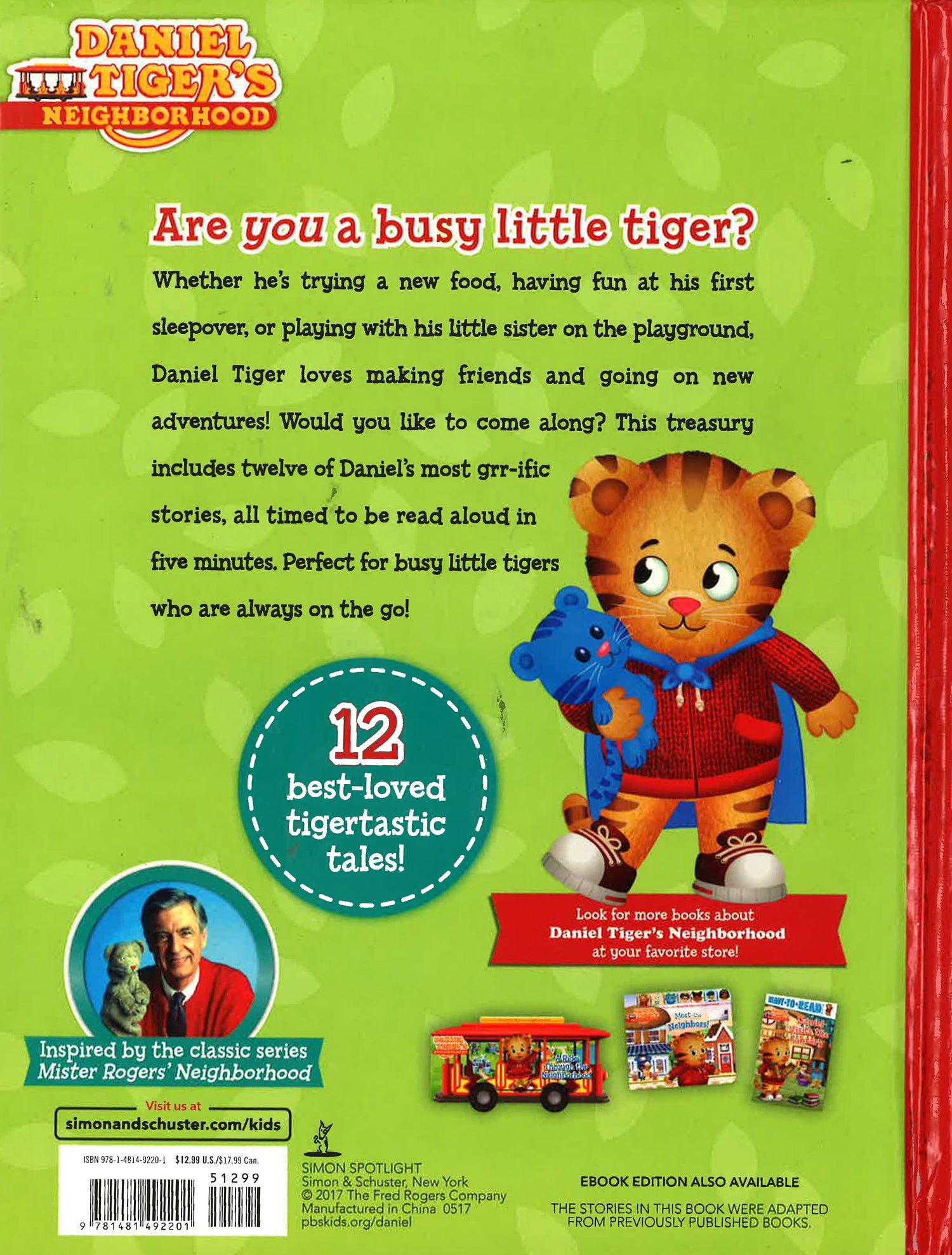 Whether he's trying a new food, having fun at his first sleepover, or playing with his little sister on the playground, Daniel Tiger loves making friends and going on new adventures! This treasury includes twelve of Daniel's stories - all timed to be read aloud in five minutes.