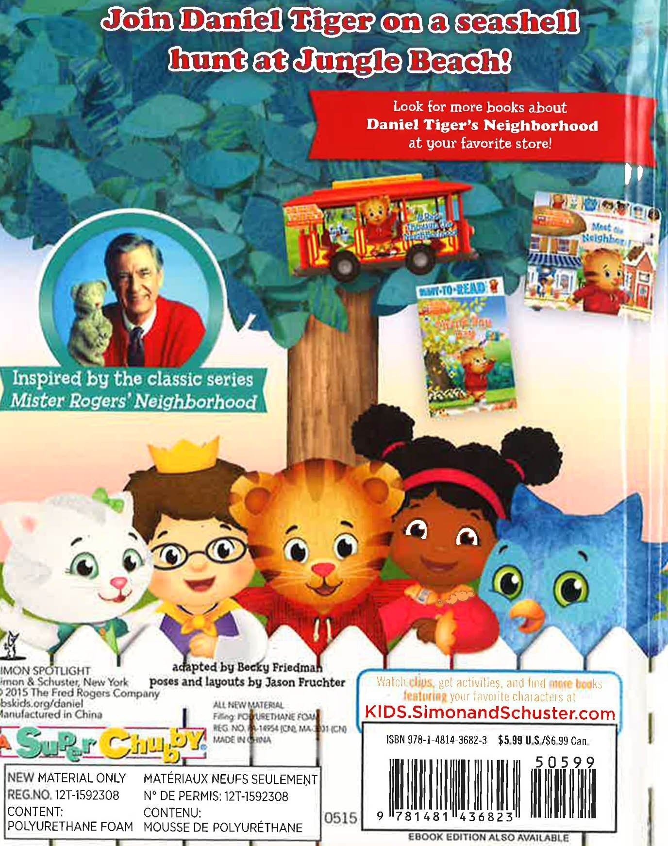 Daniel Tiger and Katerina Kittycat are spending the day at Jungle Beach with Mom Tiger! They're doing lots of fun things like playing in the sand, splashing in the waves, and going on a hunt for seashells and starfish. But most importantly, they are learning how to stay safe at the beach, so they can keep playing all day long! This chubby board book has a padded cover with rounded corners and board pages, making it perfect for Daniel's youngest fans.