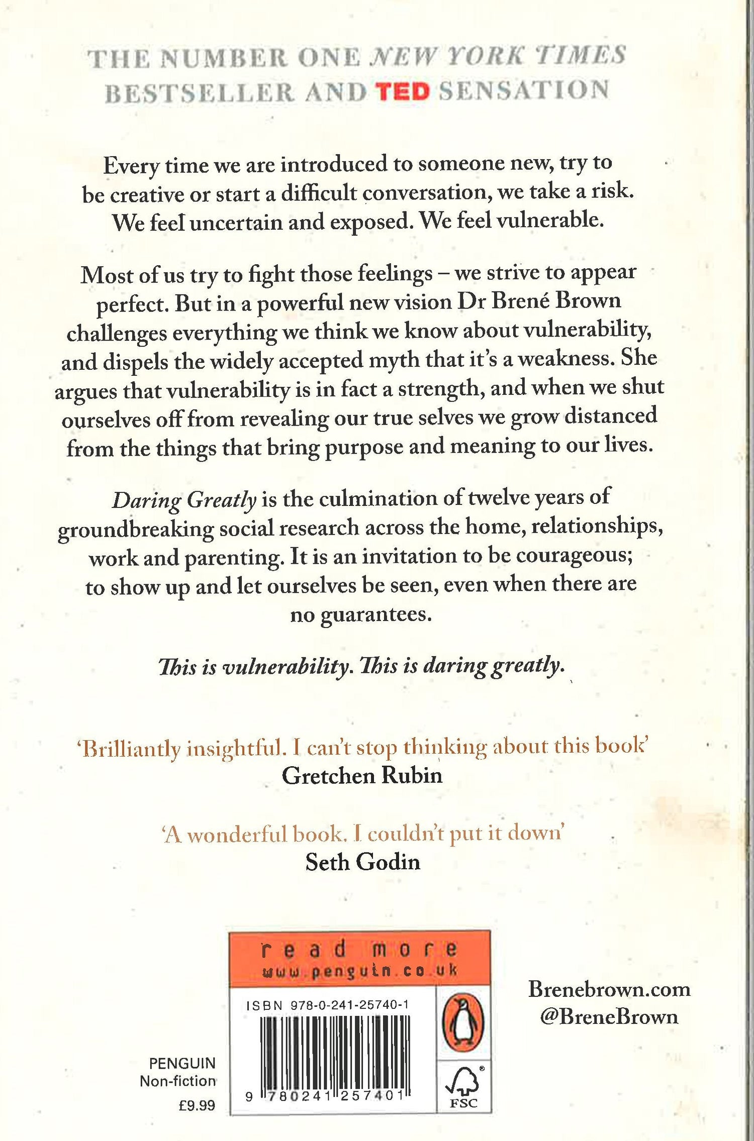 Every time we are introduced to someone new, try to be creative, or start a difficult conversation, we take a risk. We feel uncertain and exposed. We feel vulnerable. Most of us try to fight those feelings - we strive to appear perfect. In a powerful new vision Dr. Brene Brown challenges everything we think we know about vulnerability, and dispels the widely accepted myth that it's a weakness. She argues that, in truth, vulnerability is strength and when we shut ourselves off from vulnerability - fromrevealing our true selves - we distance ourselves from the experiences that bring purpose and meaning to our lives. Daring Greatly is the culmination of 12 years of groundbreaking social research, across every area of our lives including home, relationships, work, and parenting. It is an invitation to be courageous; to show up and let ourselves be seen, even when there are no guarantees.