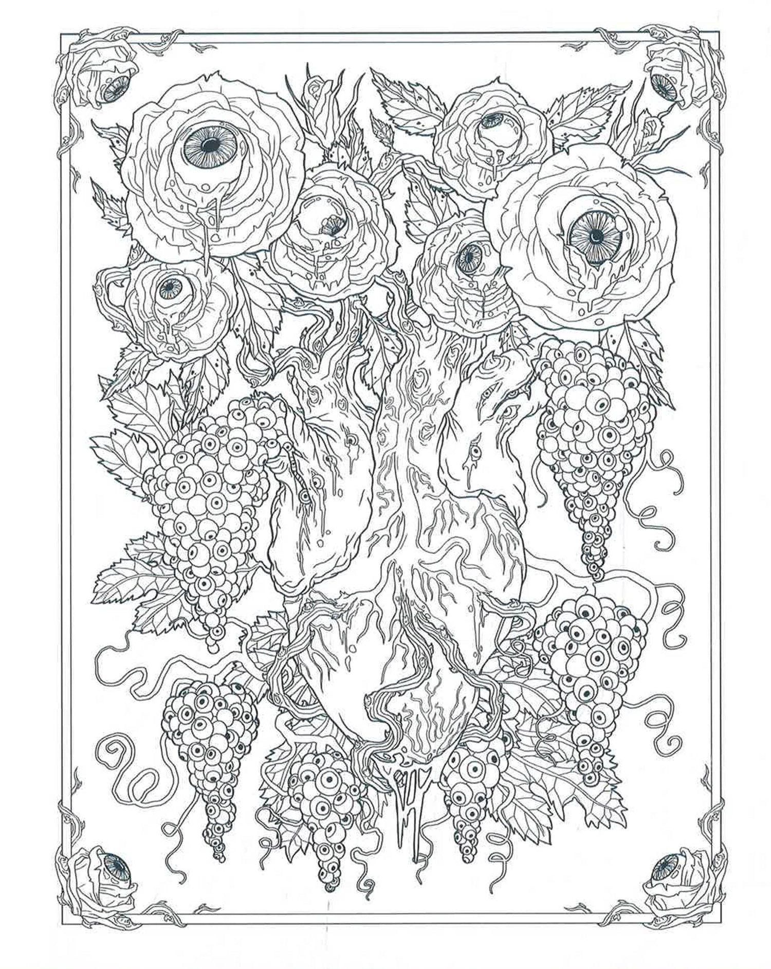 Color your way through the grim and gruesome world of Dark Art. Featuring elaborately detailed black line artwork of undead clowns, haunted skulls, bleeding hearts, and many other spine-tingling creations, this sinister and beautiful book is perfect for all horror fans with a taste for the macabre.