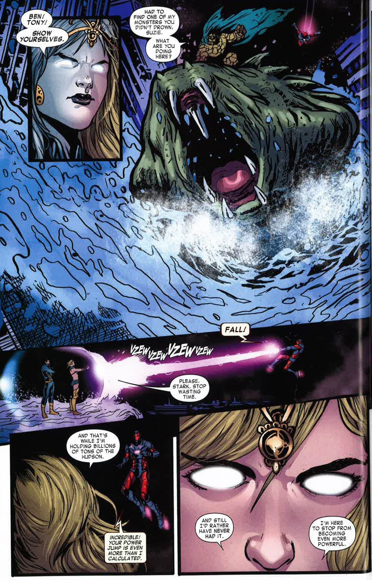 What force on this planet - nay, this universe - can turn Earth's deadliest villains into heroes? Find out as Skaar, Moonstone and Ragnarok go to war with...the deadly Doctor Strange! Then: Dr. June Covington is turned loose in Tony Stark's Frankensteinian laboratory. Her first subject for "improvement"? Ragnarok! Plus: trapped in a dangerous world, the Dark Avengers may have found the secret to returning home! But can they fight their way out of King Thing's torture pit? All this, and the return of U.S.Agent!