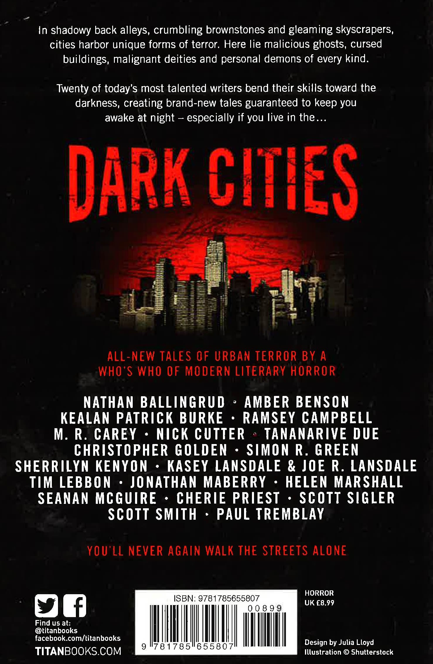 An anthology of horror stories in urban settings-whether back alleys, crumbling brownstones, gleaming high-rise towers, or city hall. Terrifying urban myths, malicious ghosts, cursed architecture, malignant city deities, personal demons (in business or relationships) twisted into something worse...virtually anything that inspires the contributors to imagine some bit of urban darkness.