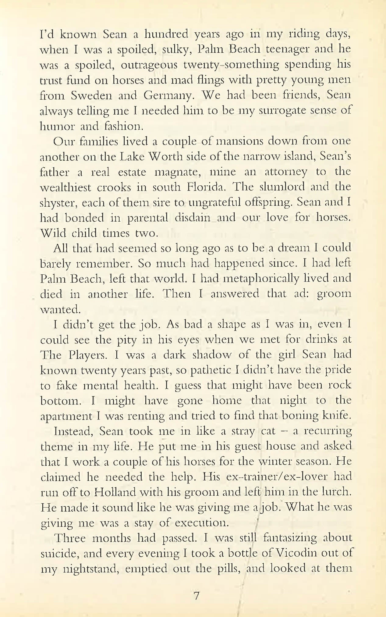 Elena Estes's stubborn risk-taking has cost her dearly: her job, her confidence, her career in the Miami PD and, most importantly, the life of a fellow cop. Now in retreat in Florida with only the soothing presence of horses for company, Elena begins to find some peace. But then a visitor comes calling. Twelve-year-old Molly Seabright believes something terrible has happened to her older stepsister. Erin, eighteen and trouble, is a groom at the Wellington show grounds but hasn't been seen for several days. Elena isn't interested in the case but Molly convinces her to make one trip to the show grounds. Elena finds herself in a world populated by the ultra-rich and the ultra-ruthless. She must find out what's happened to Erin before it's too late to save the girl - and herself.