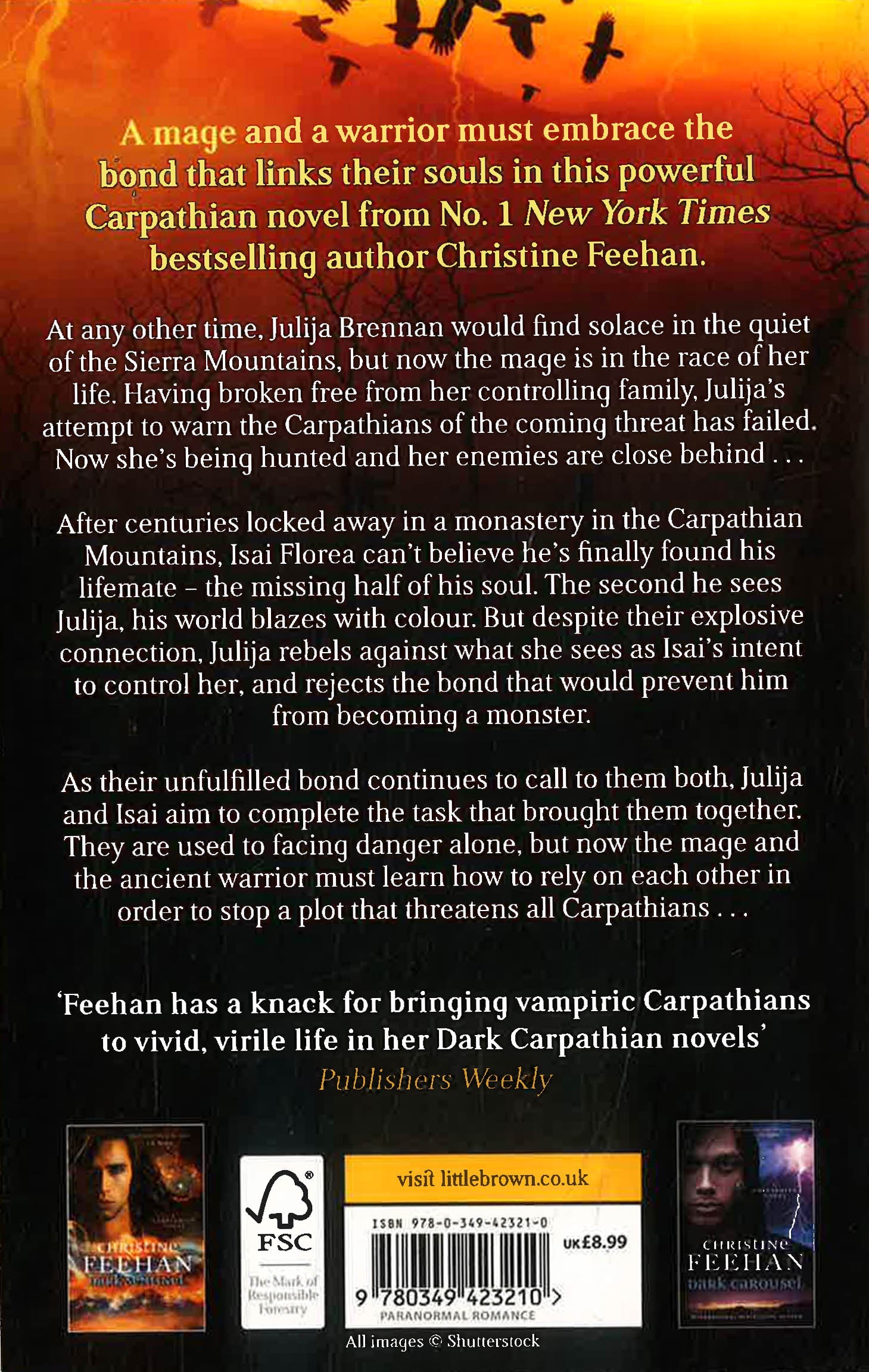 The next exhilarating novel from #1 New York Times bestselling author Christine Feehan.A mage and a warrior must see beyond their facades and embrace the bond that links their souls in this powerful Carpathian novel from #1 New York Times bestselling author Christine Feehan. At any other time, Julija Brennan would find solace in the quiet of the Sierra Mountains, but now the mage is in the race of her life. Having broken free from her controlling family, Julija's attempt to warn the Carpathians of the coming threat has failed and put a target on her back-and those who are hunting her are close behind....After centuries locked away in a monastery in the Carpathian Mountains, Isai Florea can't believe he's finally found his lifemate-the missing half of his soul. The second he sees Julija, his world blazes with color. But despite their explosive connection, Julija rebels against what she sees as Isai's intent to control her and rejects the bond that would prevent him from becoming a monster. As their unfulfilled bond continues to call to them both, Julija and Isai aim to complete the task that brought them together. They are used to facing danger alone, but now the mage and the ancient warrior must learn how to rely on each other in order to stop a plot that threatens all Carpathians....Praise for Christine Feehan:'After Bram Stoker, Anne Rice and Joss Whedon, Christine Feehan is the person most credited with popularizing the neck gripper' Time'Feehan has a knack for bringing vampiric Carpathians to vivid, virile life in her Dark Carpathian novels' Publishers Weekly'The erotic, gripping series that's defined an entire genre! Must reading that always satisfies!' J.R. Ward'The queen of paranormal romance' USA Today