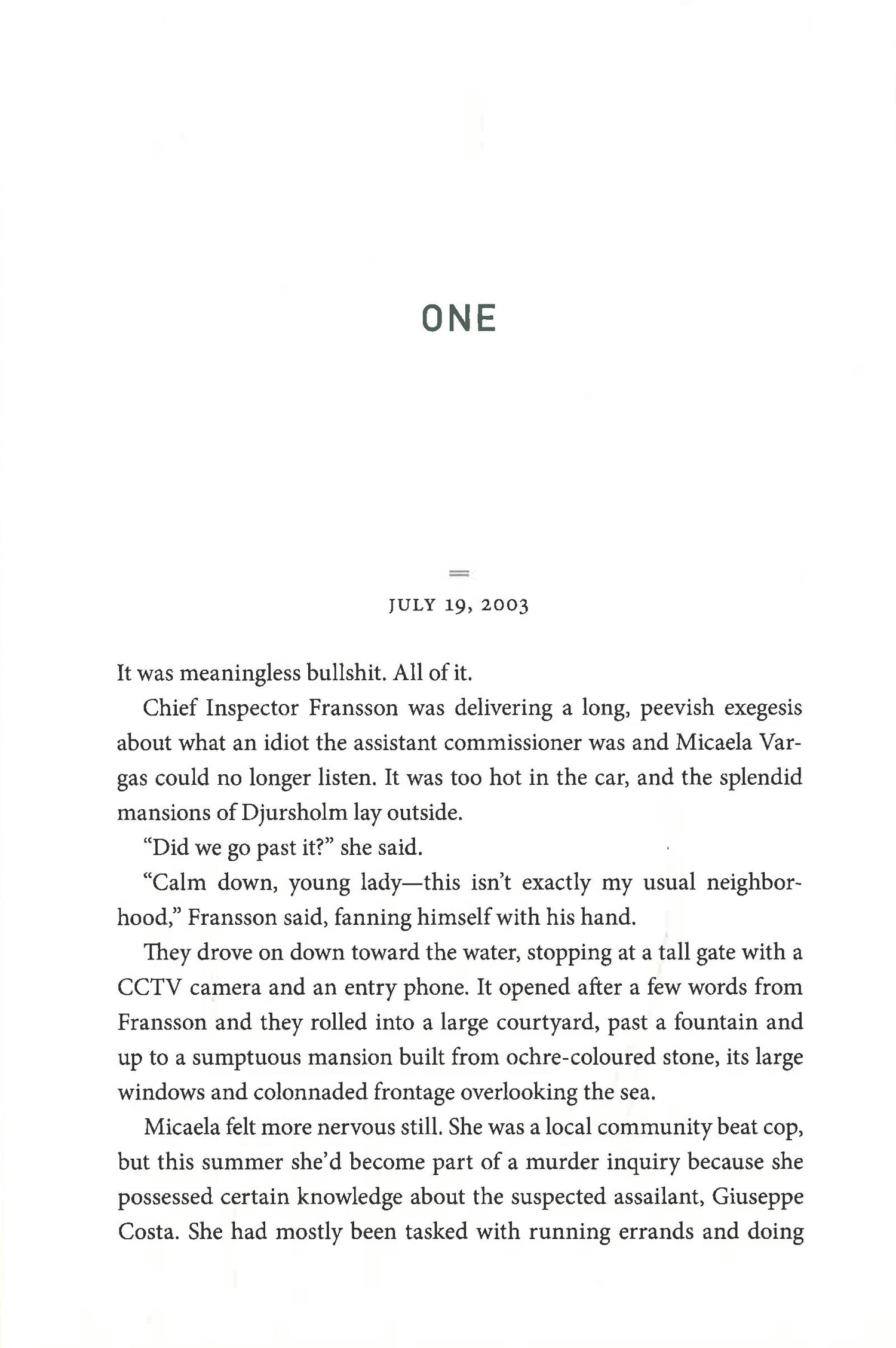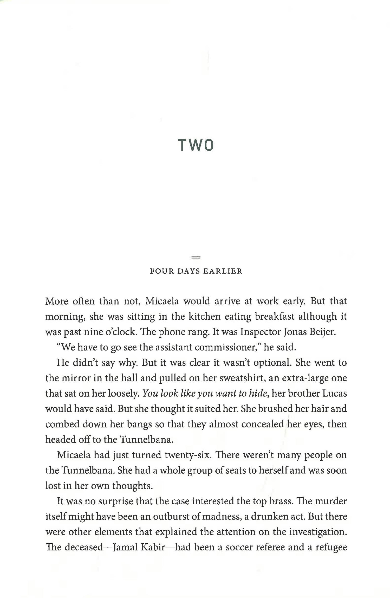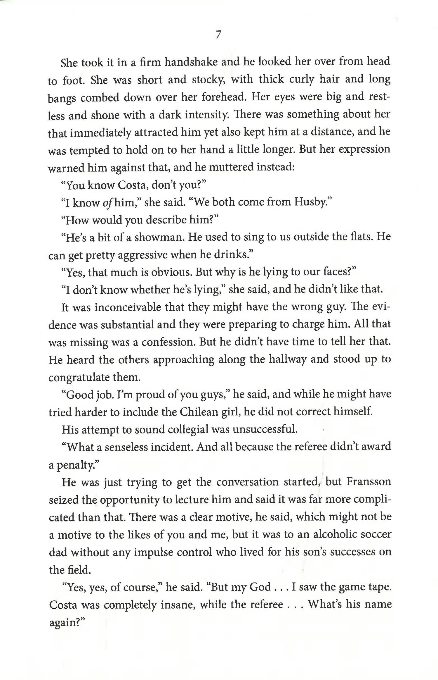 Professor Hans Rekke is a world authority on interrogation techniques, capable of dizzying feats of logic and observation. He was born into wealth and power and has a picture-perfect wife and daughter. But he also has a fragile psyche that falls apart under pressure. Micaela Vargas is a street-smart police officer, daughter of Chilean political refugees, who grew up in the projects on the outskirts of Stockholm and has two brothers on the wrong side of the law. She is tenacious and uncompromising, and desperate to prove herself to her fellow cops. Micaela needs Hans's unique mind to help her solve the case of a murdered asylum-seeker from Afghanistan. Hans needs Micaela to save him from himself. Together, they need to find the killer before they're both silenced for good.