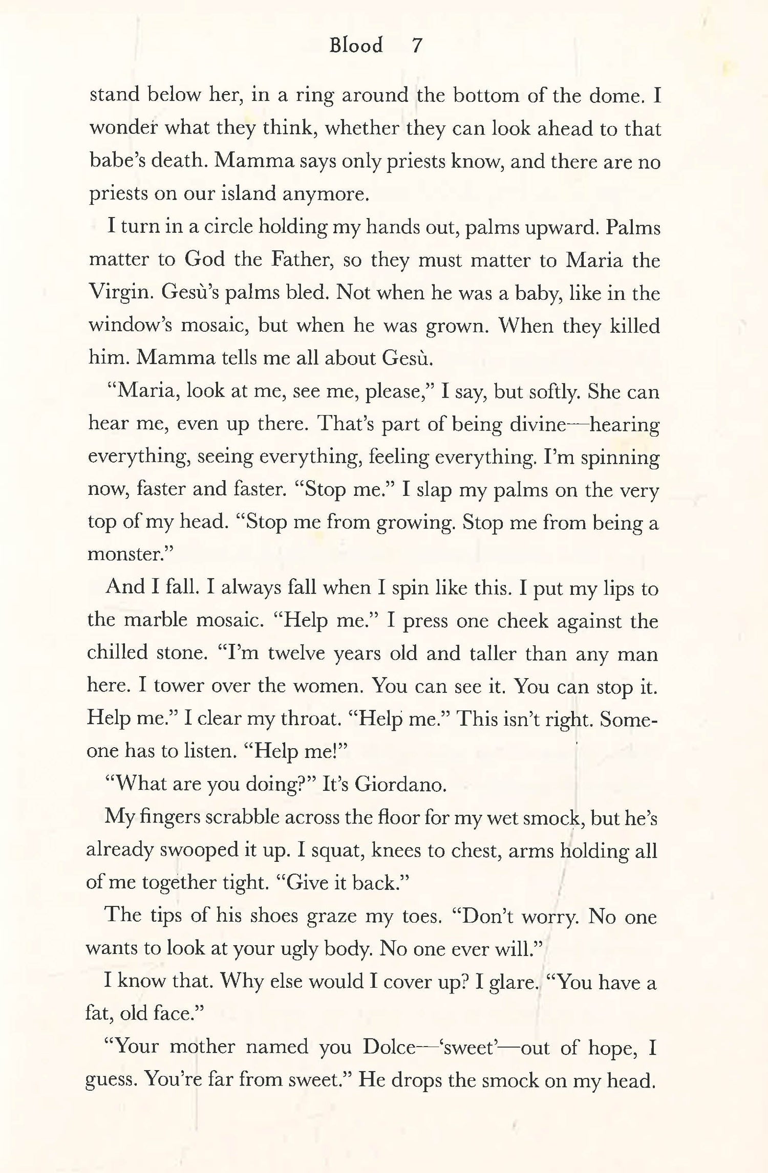 Set in medieval Venice, this captivating fairy tale retelling by award-winning author Donna Jo Napoli explores belonging, beauty, and the transformative power of love through the eyes of a teenage girl. Dolce has grown up hidden away on an island in a lagoon. She is a giant, a freak, tormented by everyone but her loving mother. She spends her time learning the valuable secret of making mirrors. Following a tragedy, Dolce swims away and lands on an island where people see her as normal, even beautiful. Marin, a kind widower, and his little daughter bring Dolce to live with them in their grand palazzo. Eventually, Dolce and Marin marry. She secretly continues to make mirrors, not realizing that quicksilver endangers her . . . and so evil begins in innocence.