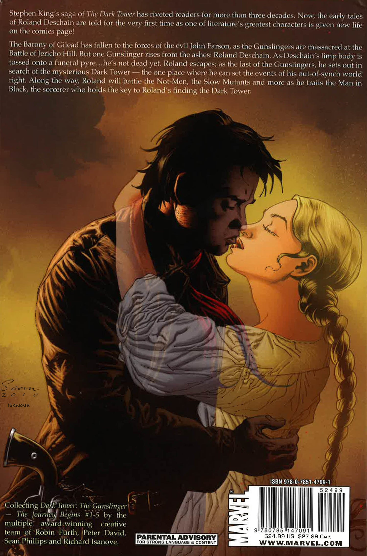 A BOLD NEW CHAPTER IN STEPHEN KING'S THE DARK TOWER SAGA! Twelve years have passed since the fateful Battle of Jericho Hill and the fall of the gunslingers. Since the Affiliation's resistance against John Farson became little more than a faint memory. Since the friends that stood by young Roland Deschain burned to ash in the Good Man's razing of Gilead. But Roland survived...and now he stalks the desert, hunting the spectral Man in Black in his quest for the Dark Tower. Join Robin Furth, Peter David and Richard Isanove as they welcome superstar artist Sean Phillips (INCOGNITO) into the ka-tet of creators entrusted by Stephen King himself to bring the adult adventures of his most personal creation to life!