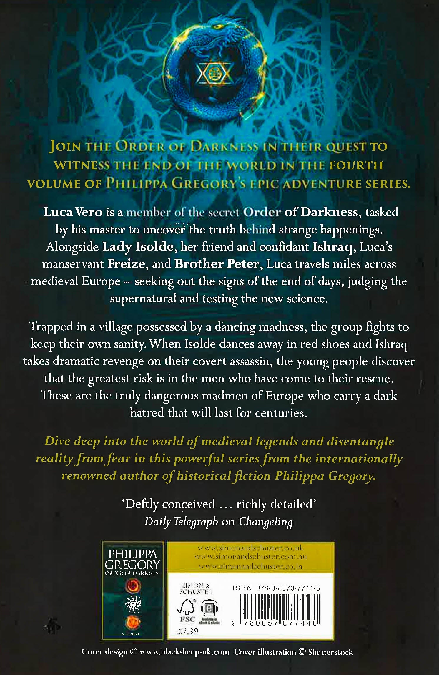 Luca Vero is a member of the secret Order of Darkness, tasked by his master to uncover the truth behind strange happenings. Together with Lady Isolde, her friend and confidant Ishraq, Luca's manservant Freize, and Brother Peter, Luca travels across medieval Europe - seeking out the signs of the end of days, judging the supernatural and testing the new science. Trapped in a village possessed by a dancing madness, the group fights to keep their own sanity. When Isolde dances away in red shoes and Ishraq takes dramatic revenge on their covert assassin the young people discover that the greatest danger is in the men who have come to their rescue. These are the truly dangerous madmen of Europe who carry a dark hatred that will last for centuries. Dive deep into the world of medieval legends and disentangle reality from fear in this powerful series from the internationally renowned author of historical fiction Philippa Gregory.