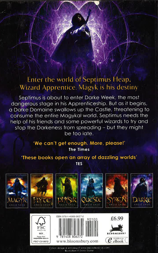 On the shortest day of the year, as the Castle is lit with candles and everyone prepares to celebrate, Wizard Apprentice Septimus Heap marks his fourteenth birthday. He has reached a new stage in his Apprenticeship: Darke Week. Awe-inspiring, terrifying, unbelievably important, Septimus's future will depend on what happens during this week. He chooses a dangerous mission to restore his good friend Alther from Banishment. But as he embarks on this trial, something Darke and terrible engulfs the Castle. Septimus and his friends are about to face their most perilous challenge yet . . .