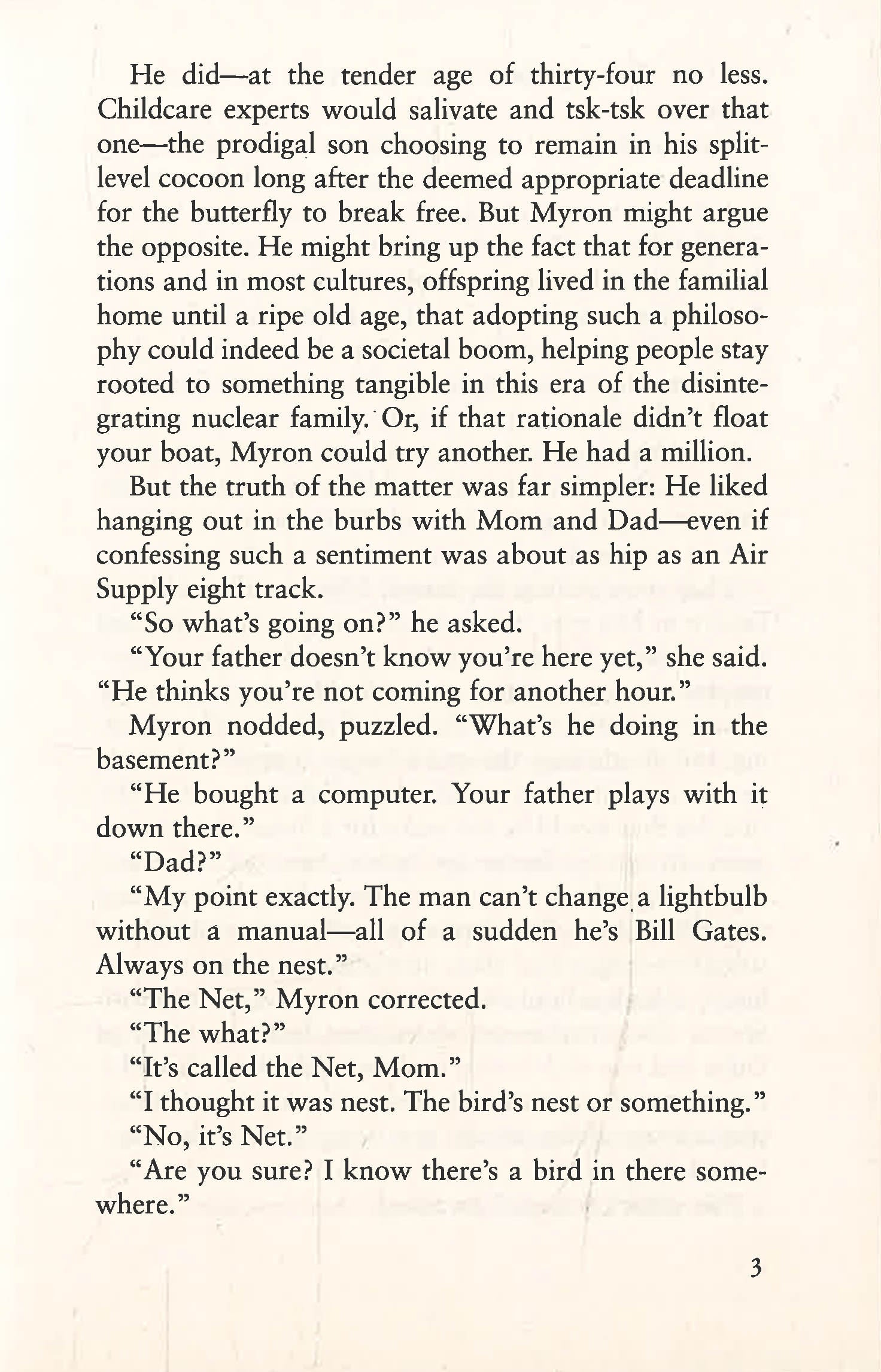 Life isn't going well for Myron Bolitar. His business is struggling, and his father, recently recovered from a heart attack, is facing his own mortality - and forcing Myron to face it too. Then Emily Downing, Myron's college sweetheart, reappears in his life with devastating news: her thirteen-year-old son Jeremy is gravely ill and can be saved only by a bone-marrow transplant - from a donor who has vanished without trace.