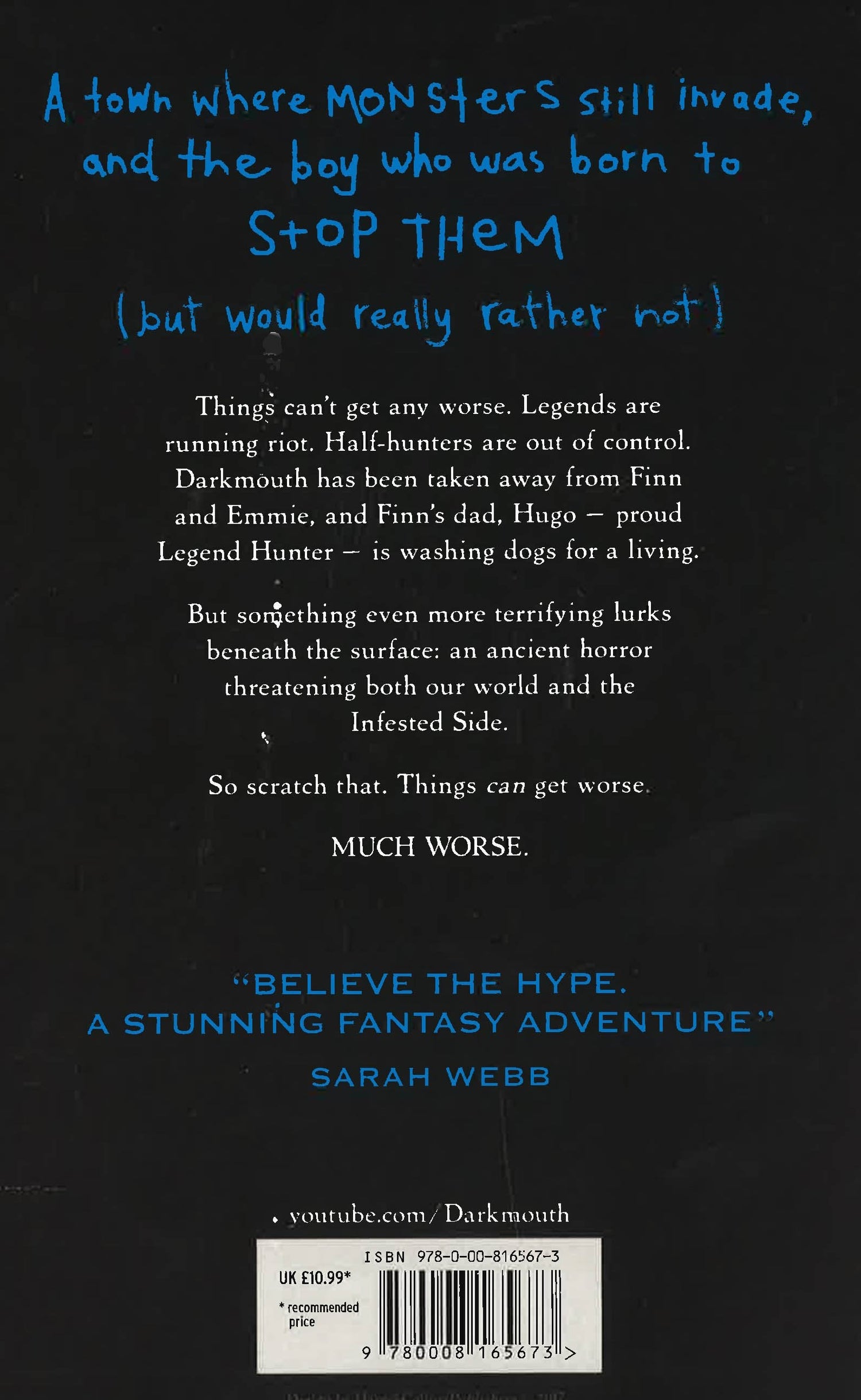 The edge-of-your-seat, monstrously-exciting, laugh-out-loud adventures of the most unfortunate monster-hunter ever to don armour... continue. Things can't get any worse. Legends are running riot. Half-hunters are out of control. Darkmouth has been taken away from Finn and Emmie, and Finn's dad Hugo - proud Legend Hunter - is washing dogs for a living. But something even more terrifying lurks beneath the surface: an ancient horror threatening both our world and the Infested Side. So scratch that. Things can get worse. Much worse. More than ever, Darkmouth is going to need a hero... Sadly, all it's got is Finn.