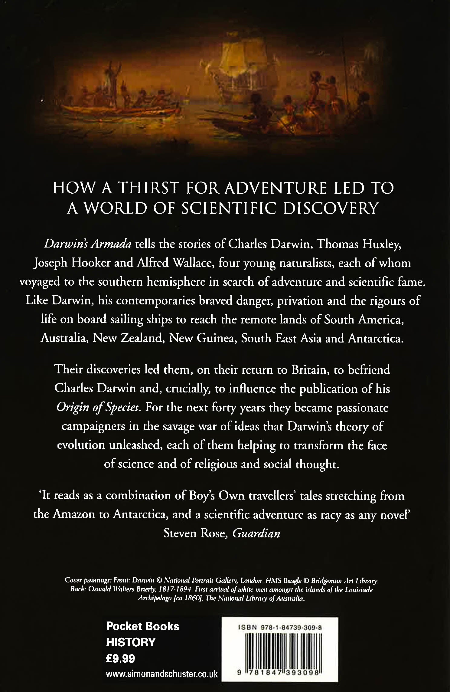 Darwin's Armadatells the stories of Charles Darwin, Thomas Huxley, Joseph Hooker and Alfred Wallace, four young amateur naturalists from Britain who voyaged to the southern hemisphere during the first half of the nineteenth century in search of adventure and scientific fame. It charts their thrilling voyages to the strange and beautiful lands of the southern hemisphere that reshaped the young mariners' scientific ideas and led them, on returning to Britain, to befriend fellow voyager Charles Darwin. All three crucially influenced the publication and reception of his Origin of Speciesin 1859, one of the formative texts of the modern world. For the first time the Darwinian revolution of ideas is seen as a genuinely collective enterprise and one that had its birth in a series of gripping and human travel adventures. Many of the most urgent ecological and social issues of our times are seen to be prefigured in this compelling story of intellectual discovery.