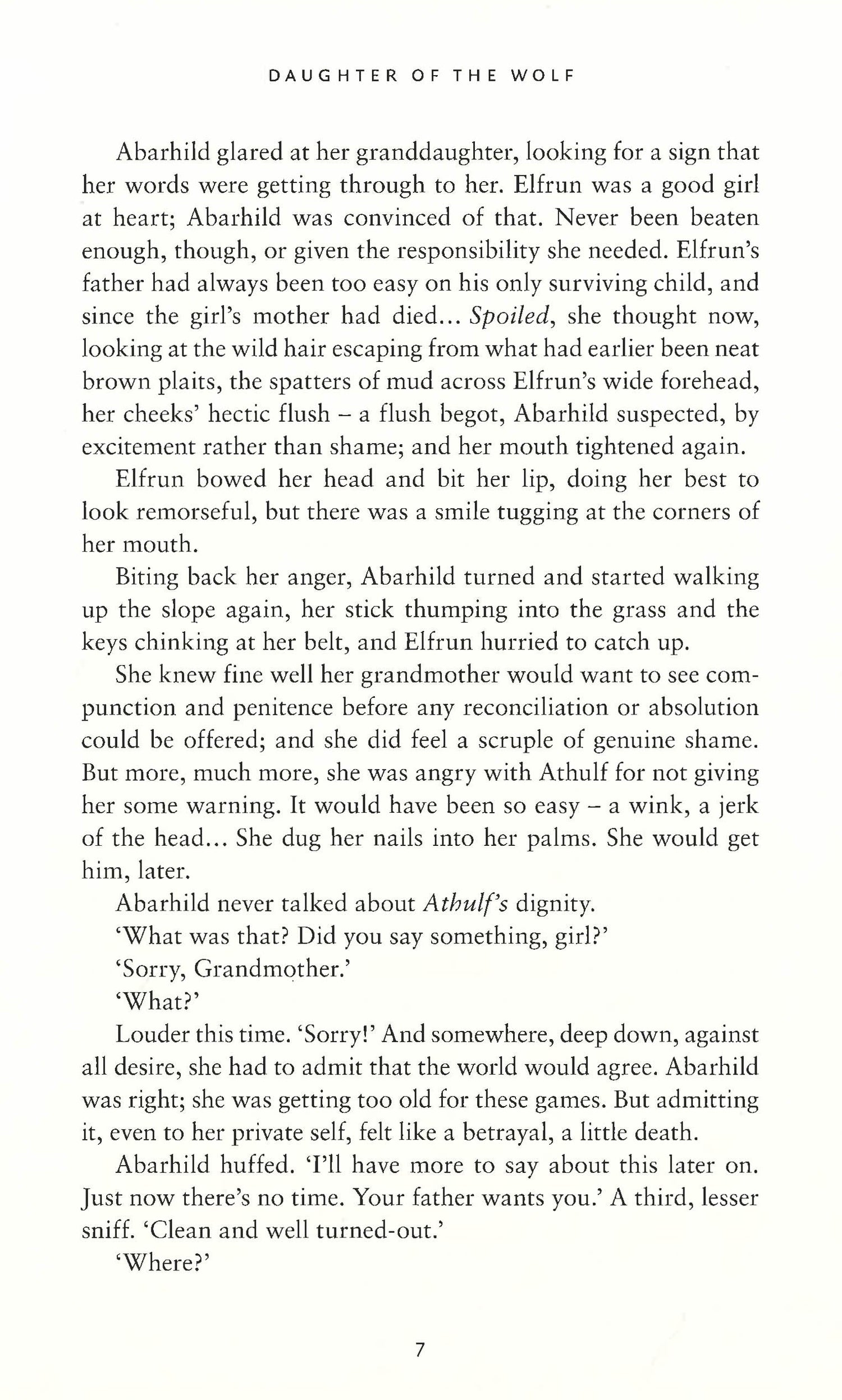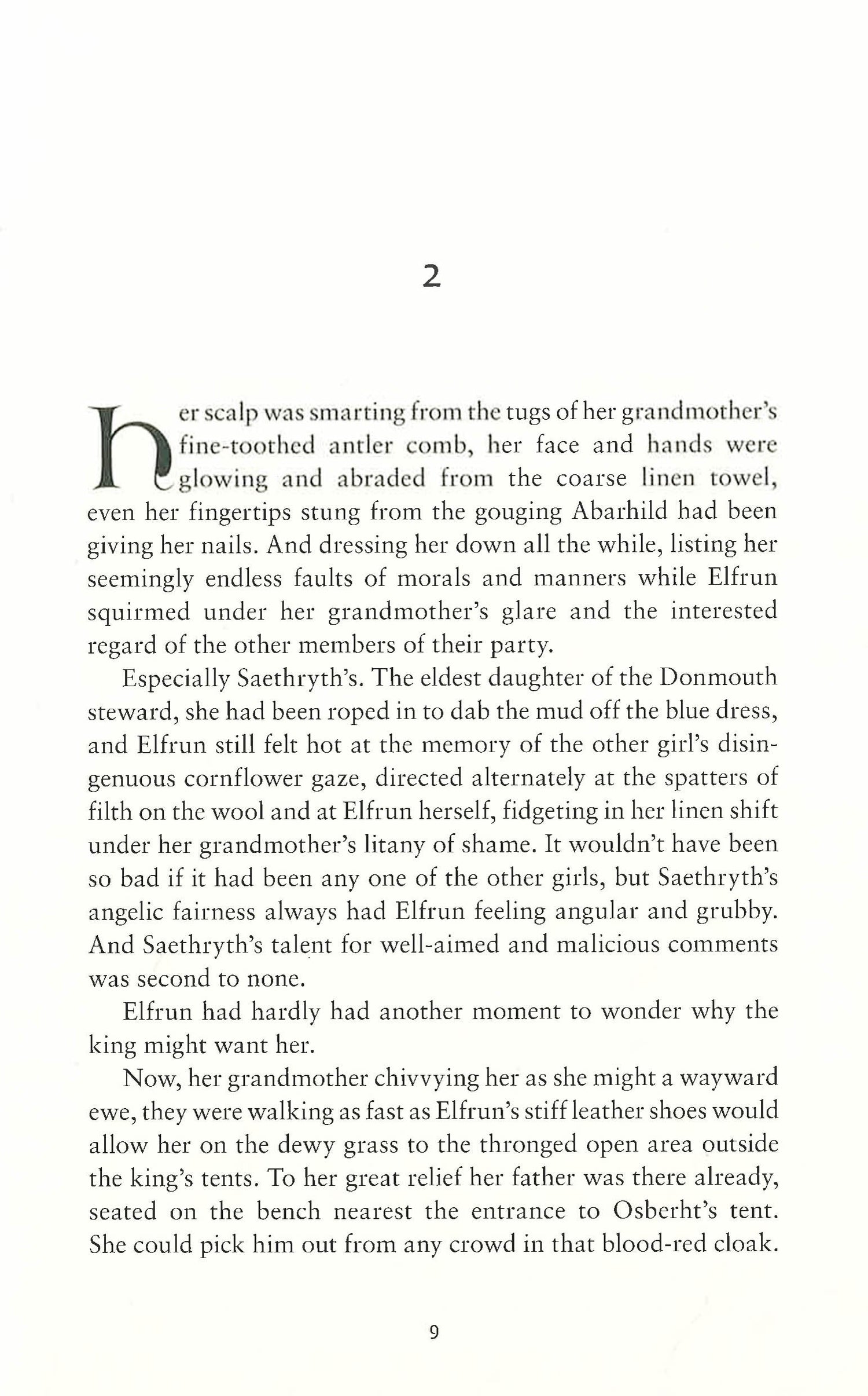 In England before the Norman Conquest, a land ruled by rival kings, Radmer of Donmouth is guardian of the estuary, the gateway to Northumbria. When his king sends him on a mission to Rome, Donmouth is left in the safekeeping of Radmer's only daughter, Elfrun.