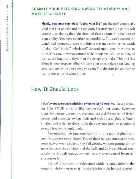 The renowned instructor behind elite pros such as Phil Mickelson and Vijay Singh shows you how to conquer the ten shots you fear the most. Some golfers stand over shots with so much fear in their hearts that they can't bear to swing their clubs. Others, filled with anxiety, butcher shots they might otherwise hit reasonably well. After conducting worldwide surveys to determine which shots golfers fear the most, master golf instructor Dave Pelz has focused his skilled research and development on creating a methodology and conditioning process proven to teach golfers how to conquer their top 10 most feared shots. The first book to use the "Golfer's Eye View(tm)"-a technique developed for Pelz by "hall of fame" golf photographer Leonard Kamsler-Dave Pelz's Golf without Fear features Pelz's signature combination of science and savvy. Coaching readers through their shots, Pelz offers a visual method of instruction, with close-up images of the problems that caused their fears, the solutions to those problems, and step-by-step instructions for how to execute those shots with confidence in the future. He retrains golfers to apply precise, clearly defined body positions and setups, in addition to specific techniques for the moment when contact with the ball occurs, makingDave Pelz's Golf without Fear a trove of score-saving lessons. With full-color photography throughout, this is a powerful course in making winners out of even your worst shots. *This book may have remainder mark