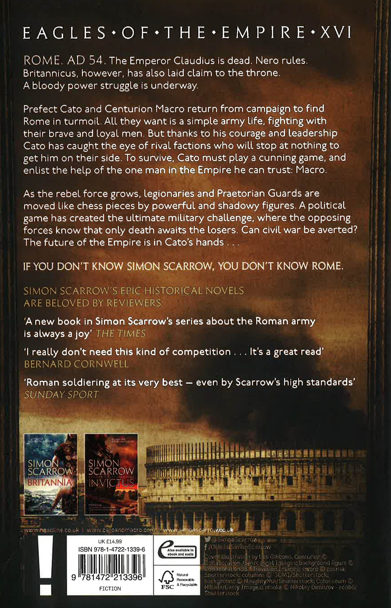 A Sunday Times bestsellerAD 54. The Emperor Claudius is dead. The threat of civil war hangs over the Empire. Roman army Prefect Cato and Centurion Macro could save the day - or lose their lives in the fighting. The brilliant new adventure in the Eagles of the Empire series. From the Sunday Times-bestselling author of INVICTUS and CENTURION. The Sunday Times bestsellerAD 54. Claudius is dead. Rome is in turmoil. And two brave heroes of the Roman army face the challenge of their lives. Simon Scarrow's DAY OF THE CAESARS is not to be missed by readers of Conn Iggulden and Bernard Cornwell. 'A new book in Simon Scarrow's series about the Roman army is always a joy' The TimesThe Emperor Claudius is dead. Nero rules. His half-brother Britannicus has also laid claim to the throne. A bloody power struggle is underway. All Prefect Cato and Centurion Macro want is a simple army life, fighting with their brave and loyal men. But Cato has caught the eye of rival factions determined to get him on their side. To survive, Cato must play a cunning game, and enlist the help of the one man in the Empire he can trust: Macro.As the rebel force grows, legionaries and Praetorian Guards are moved like chess pieces by powerful and shadowy figures. A political game has created the ultimate military challenge. Can civil war be averted? The future of the Empire is in Cato's hands...IF YOU DON'T KNOW SIMON SCARROW, YOU DON'T KNOW ROME!