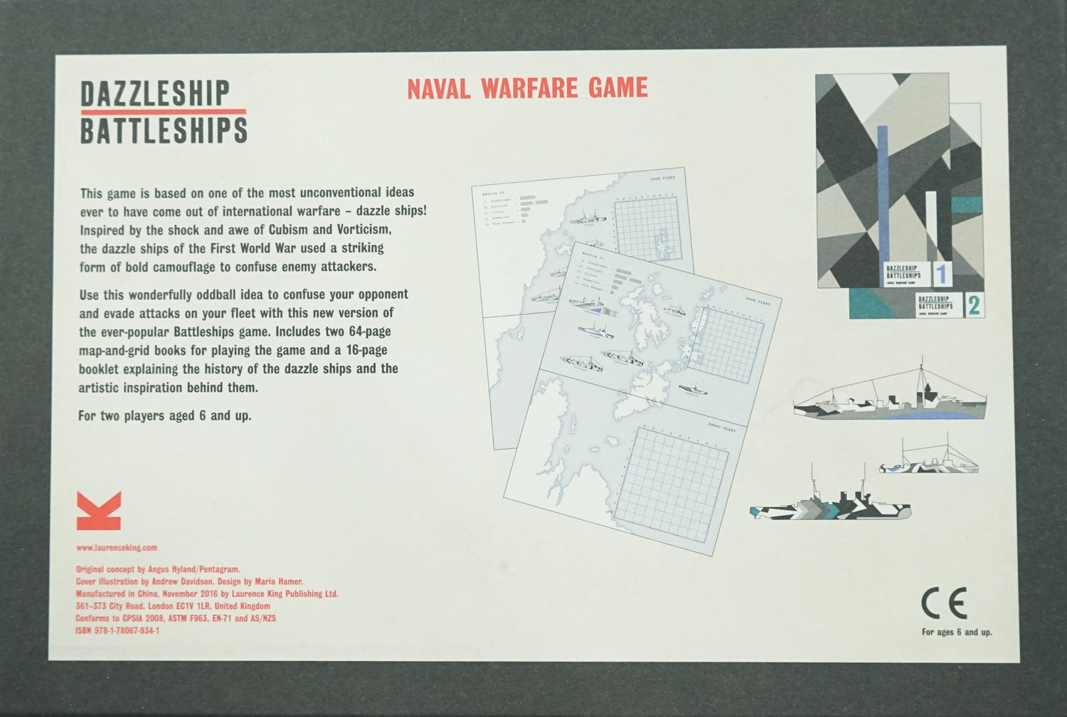 For two players aged six and up. This game is based on one of the most unconventional ideas ever to have come out of international warfare ? dazzle ships! Inspired by the shock and awe of Cubism and Vorticism, the dazzle ships of the First World War used a striking form of bold camouflage to confuse enemy attackers.