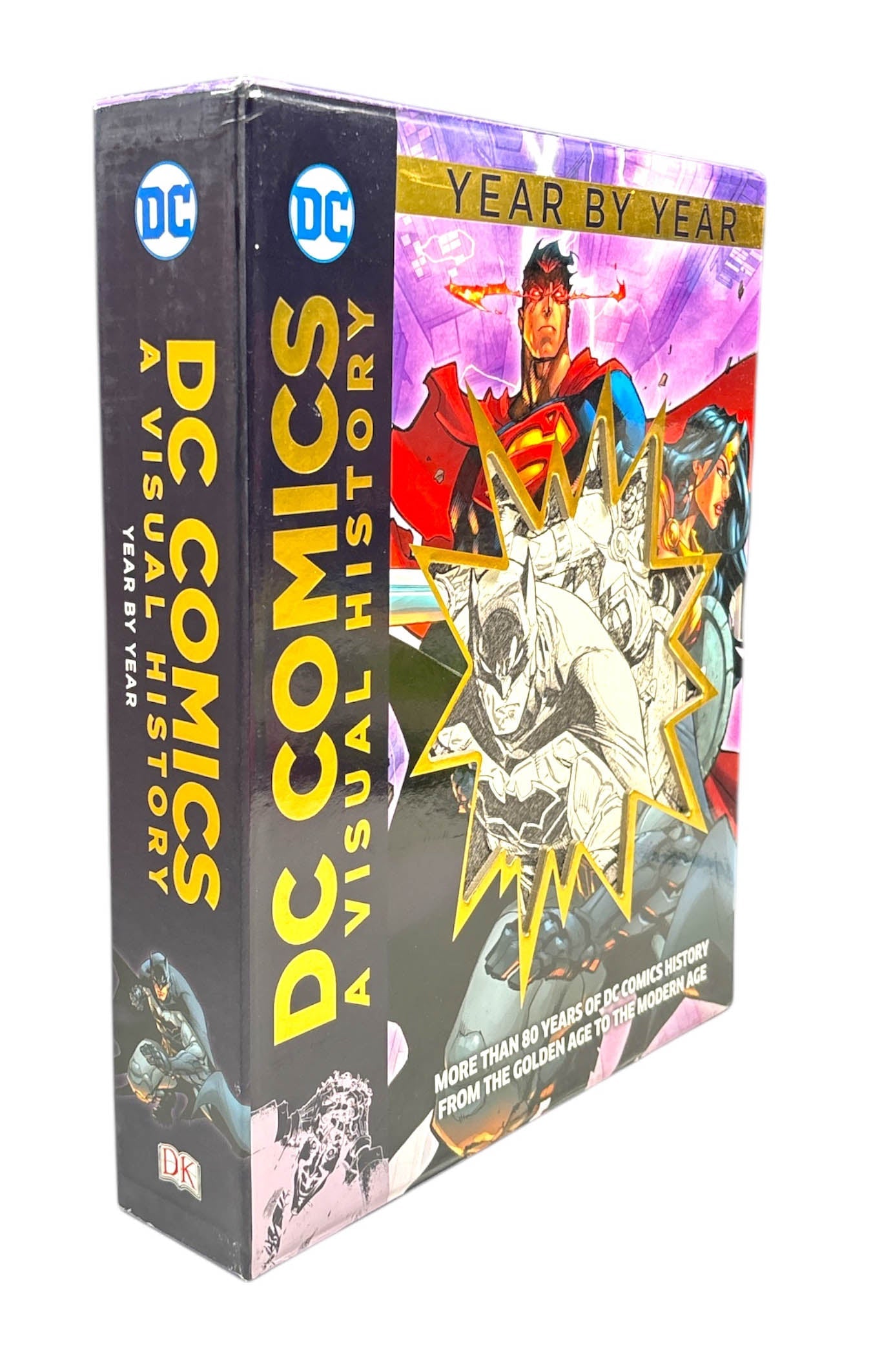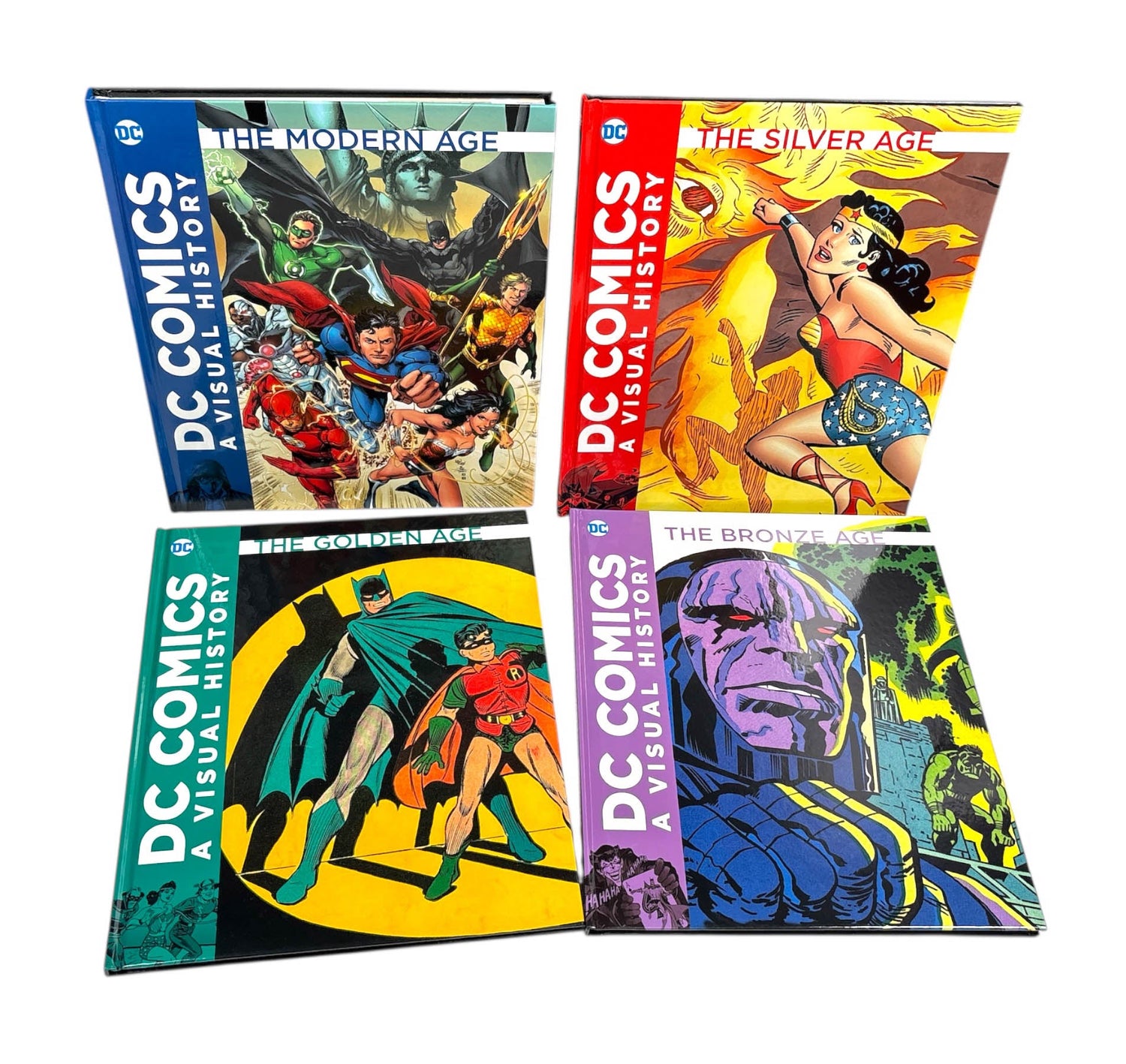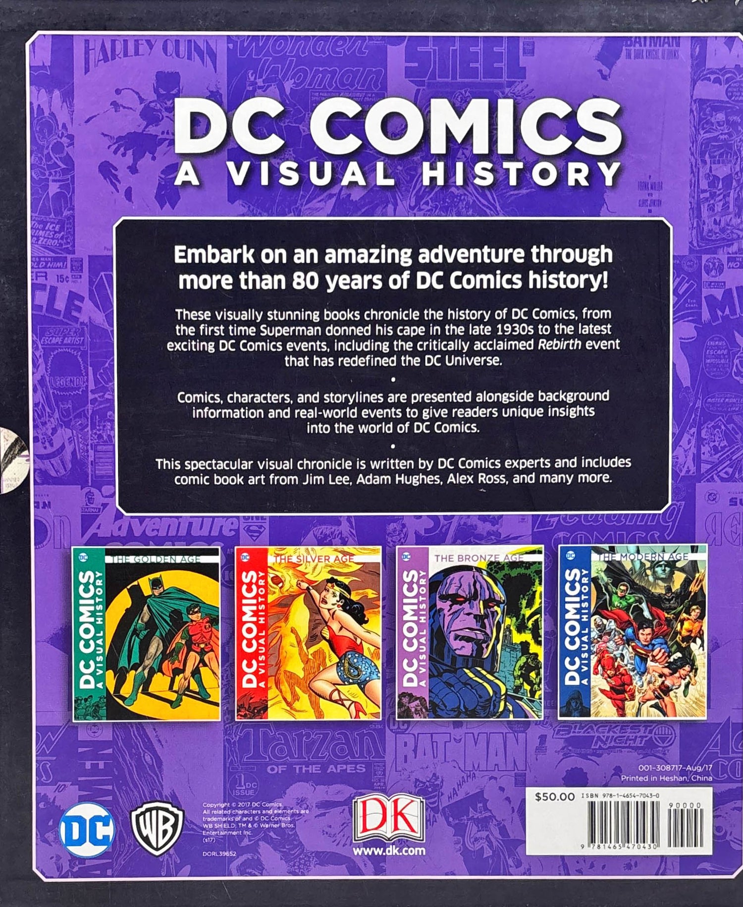 Embark on an amazing adventure through more than 80 years of DC Comics history! This visually stunning book set is on that chronicles the history of DV Comics, from the first time Superman donned his cape in the late 1930s to the latest exciting DC comic events (2017), including the critically acclaimed Rebirth event that has redefined the DC Universe. Comics, characters, and storylines are presented alongside background information and real-world events to give readers unique insights into the world of DC Comics. This spectacular visual chronicle is written by DC Comics experts and includes comic book art from Jim Lee, Adam Hughes, Alex Ross , and many more. Included in this box set are THE GOLDEN AGE, THE SILVER AGE, THE BRONZE AGE, and THE MODERN AGE.