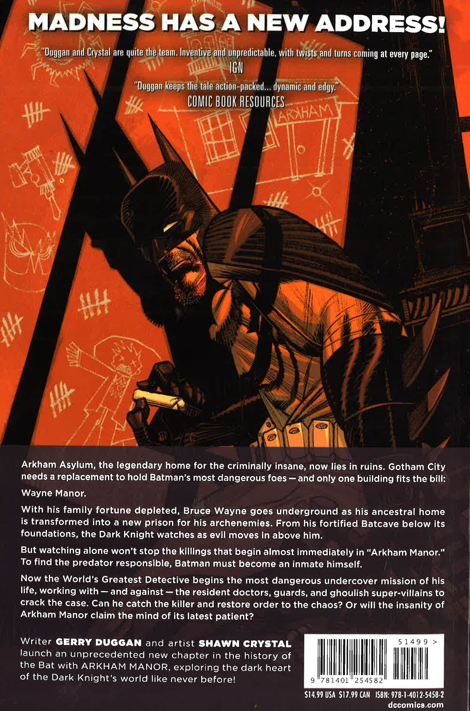 When catastrophe strikes Arkham Asylum, where will Gotham City house the world's most dangerous criminals? And when inmates are found murdered, what is Batman prepared to do in search of justice? Arkham's madness comes home in Arkham Manor, brought to you by Gerry Duggan (Deadpool, Nova) and Shawn Crystal (Deadpool, Wolverine and the X-Men). Collects Arkham Manor